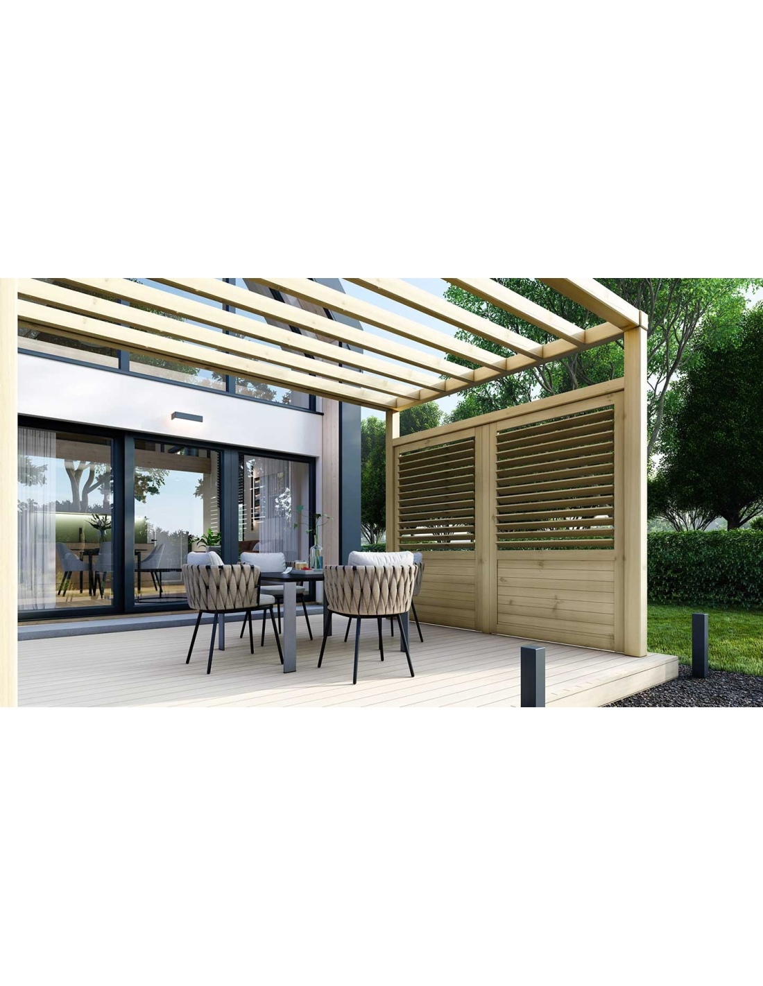 Suchen Sie nach einer Möglichkeit, Ihrer Laube, Ihrem Carport oder Ihrem Zaun einen einzigartigen Charakter zu verleihen? Unsere Holzpaneele mit verstellbaren Lamellen sind die perfekte Lösung! Ein schlichtes, aber wirkungsvolles Design, das sich harmonisch in die natürliche Gartenlandschaft einfügt und Ihrem Raum einen eleganten und gemütlichen Look verleiht.