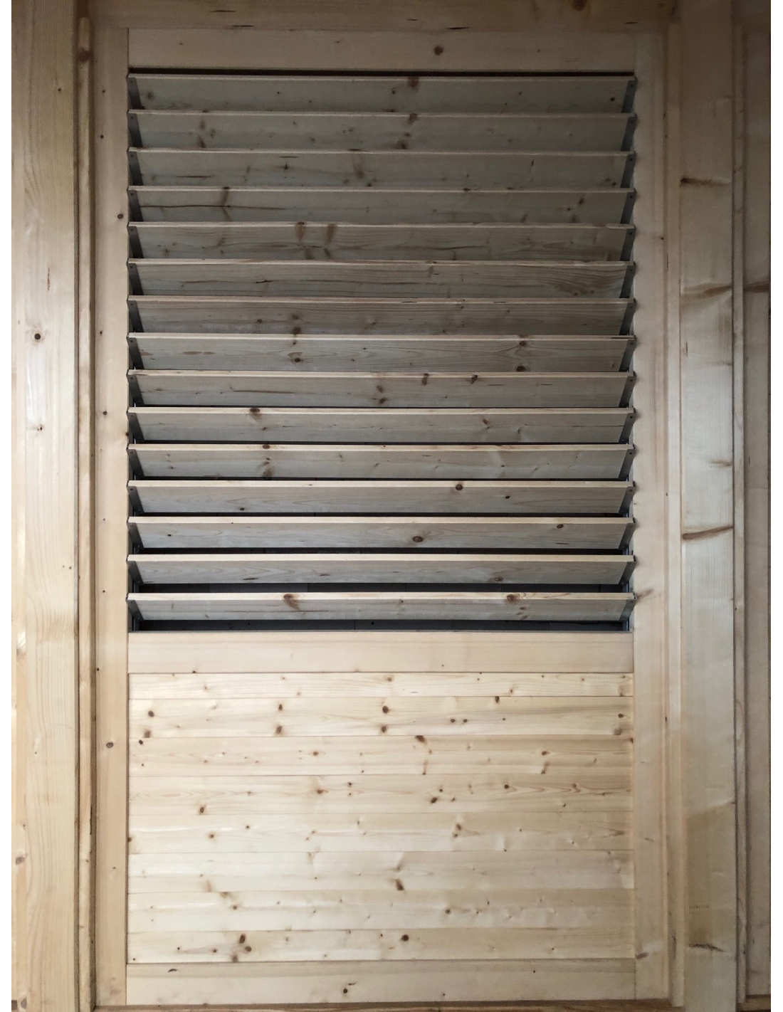 Das Set enthält zwei Paneele, die jeweils 132 cm breit und 214 cm hoch sind. Jedes Paneel ist mit verstellbaren Holzlamellen von 123 cm Höhe ausgestattet, die Ihnen volle Kontrolle über Privatsphäre und Luftzirkulation ermöglichen. An heißen Tagen lassen sich die Lamellen öffnen, um frische Luft hereinzulassen, oder an kühleren Abenden schließen, um Komfort und Privatsphäre zu gewährleisten.