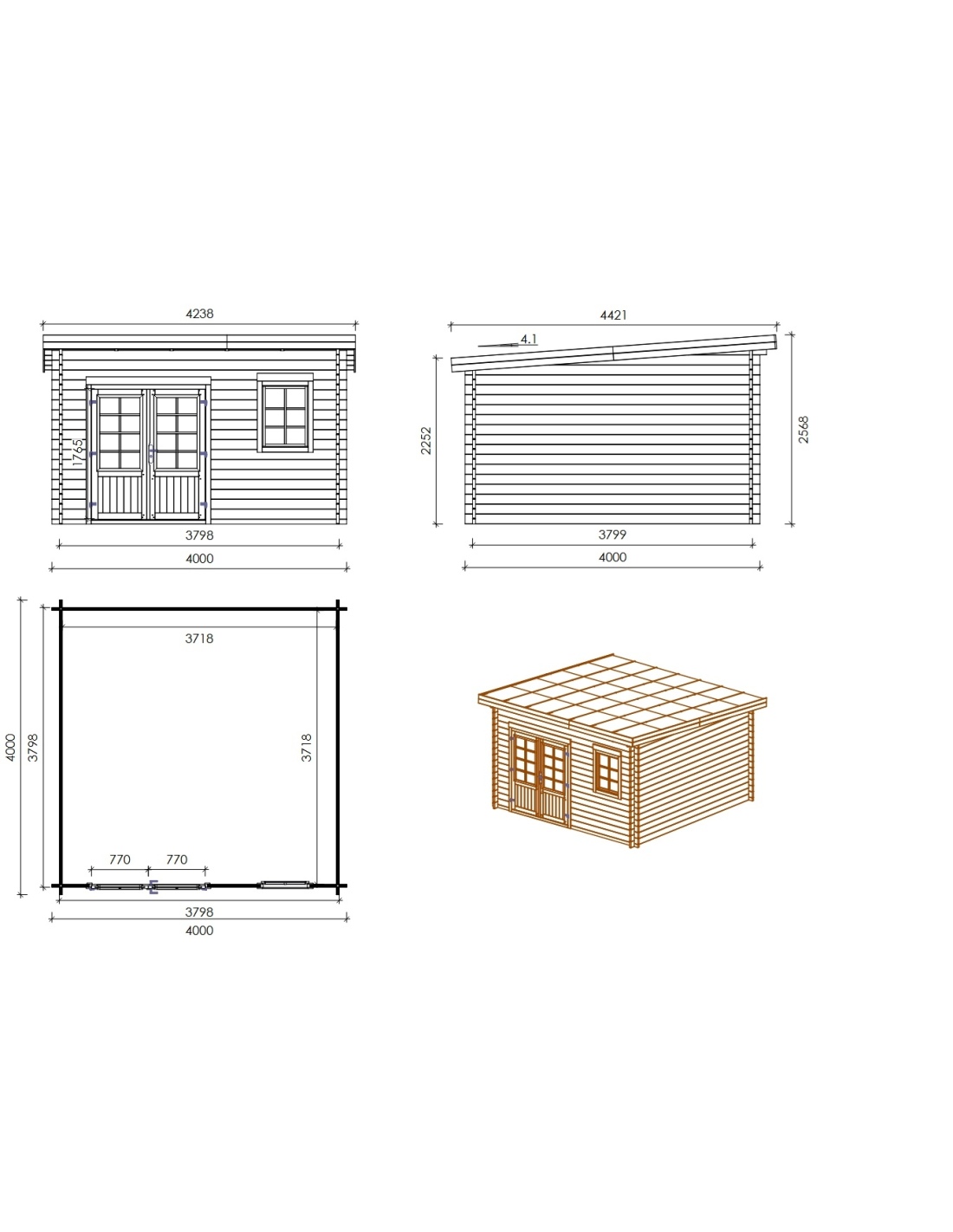Gartenhaus aus Holz DOM716 von ALTANKA p.s.a. ist idealer Ort zum Entspannen und zum Spaß für die ganze Familie. Das Haus ist aus hochwertigem Holz gefertigt. Es ist 4M breit und 4M tief, was viel Platz innen bietet.