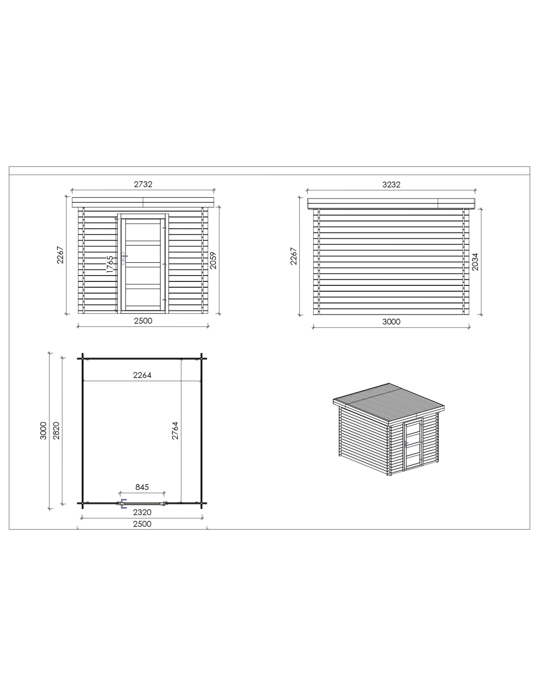 Gartenhaus aus Holz DOM699 von ALTANKA p.s.a. Es ist aus hochwertigem Holz gefertigt. Es ist 2.5M breit und 3M tief.