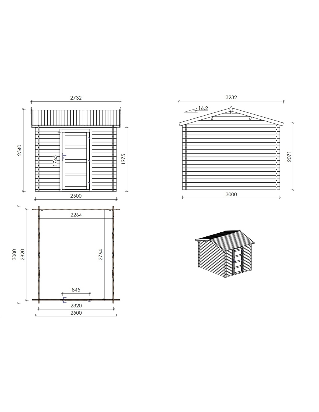 Gartenhaus aus Holz DOM675 von ALTANKA p.s.a. Es ist aus hochwertigem Holz gefertigt. Es ist 2.5M breit und 3M tief.