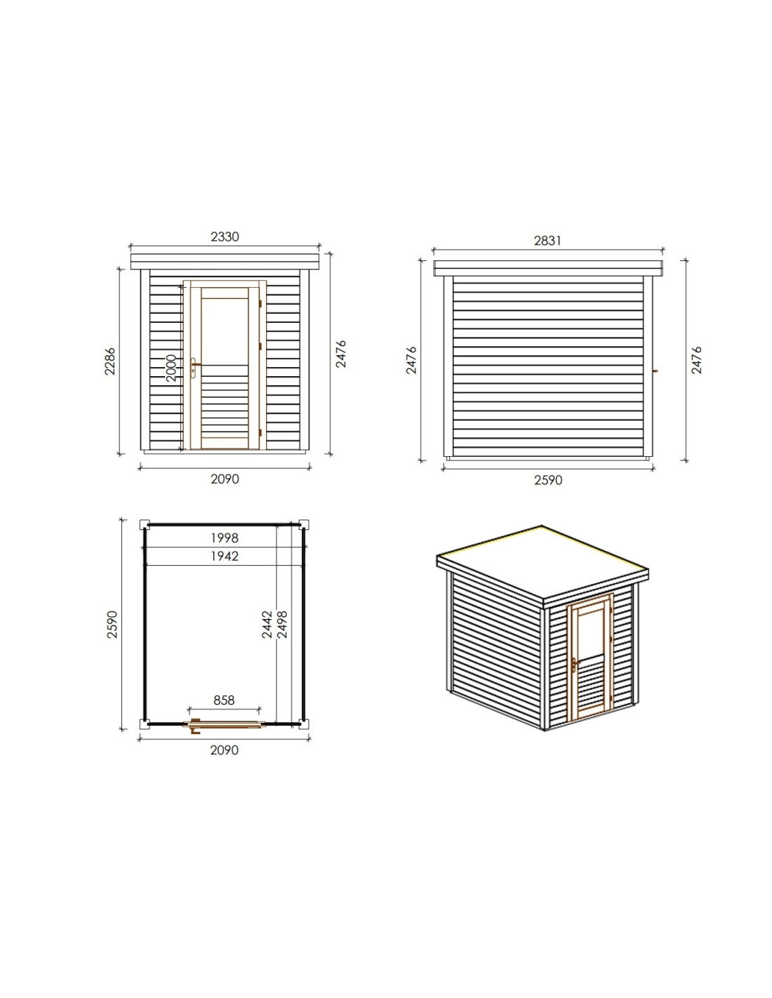 * - Der Fußboden ist nicht im Preis inbegriffen. Gartenhaus aus Holz 000016 von ALTANKA p.s.a. ist idealer Ort zum Entspannen und zum Spaß für die ganze Familie. Das Haus ist aus hochwertigem Holz gefertigt. Es ist 2.09M breit und 2.59M tief, was viel Platz innen bietet.