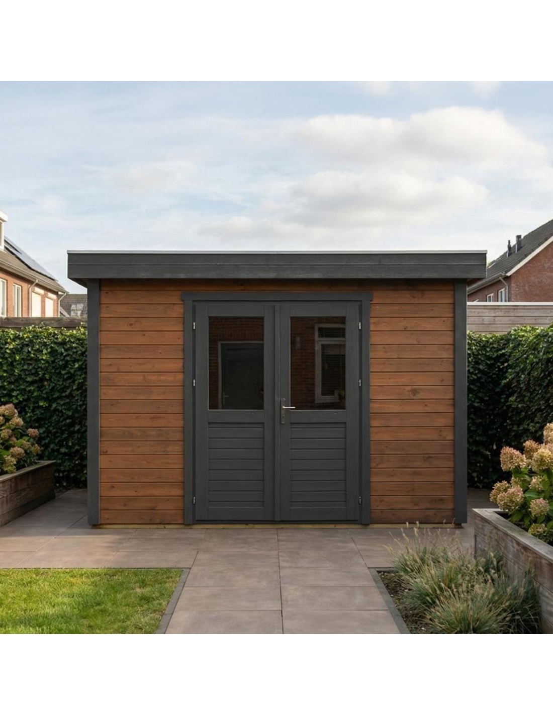 (!) Das Produkt enthält keine Dacheindeckung und kein Wasserableitungssystem – es ist notwendig, eine EPDM-Folie mit Montageprofilen sowie ein Fallrohr zur Dachentwässerung zu erwerben, um Schutz vor Witterungseinflüssen zu gewährleisten.