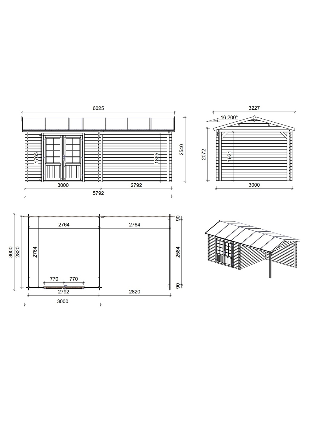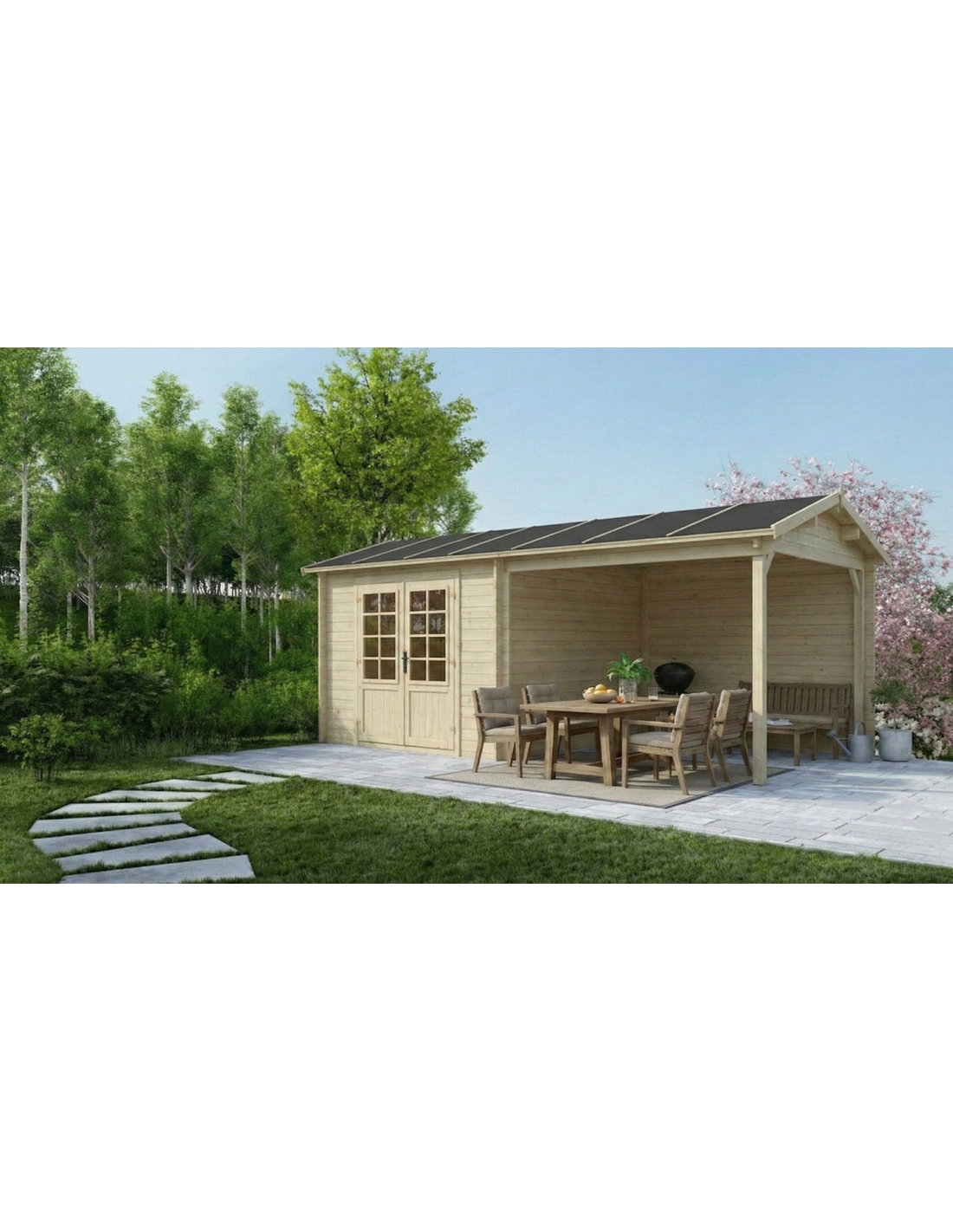 Gartenhaus aus Holz DOM764 von ALTANKA p.s.a. ist idealer Ort zum Entspannen und zum Spaß für die ganze Familie. Das Haus ist aus hochwertigem Holz gefertigt. Es ist 5.79M breit und 3M tief, was viel Platz innen bietet.