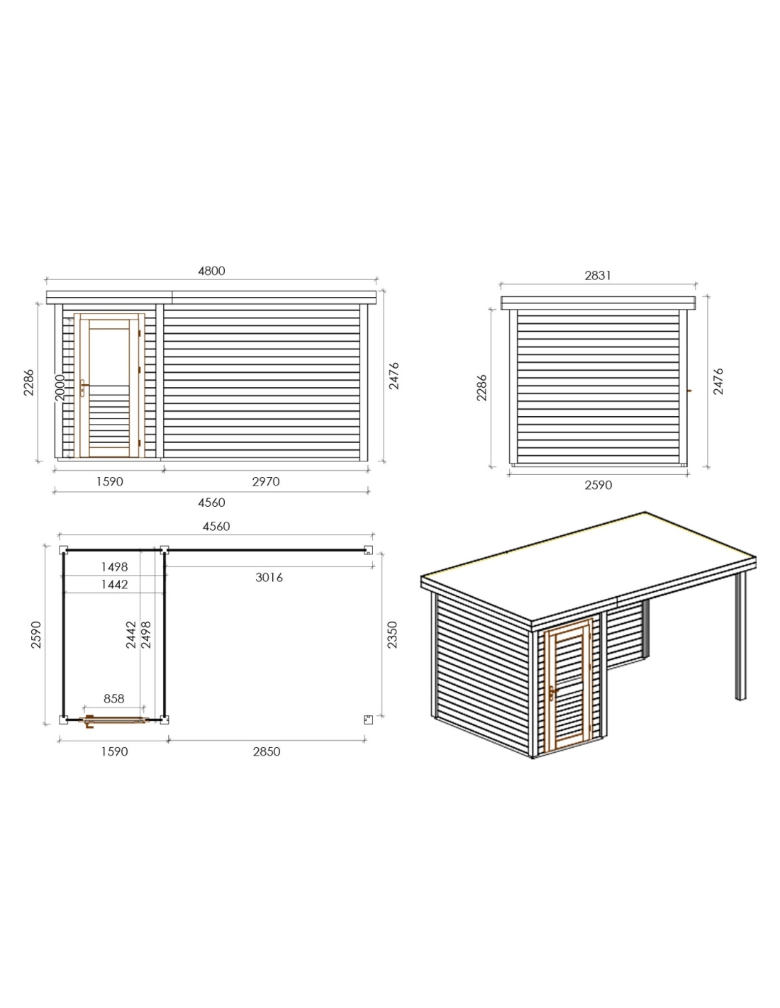 * - Der Fußboden ist nicht im Preis inbegriffen. Gartenhaus aus Holz 000035 von ALTANKA p.s.a. ist idealer Ort zum Entspannen und zum Spaß für die ganze Familie. Das Haus ist aus hochwertigem Holz gefertigt. Es ist 4.56M breit und 2.59M tief, was viel Platz innen bietet.