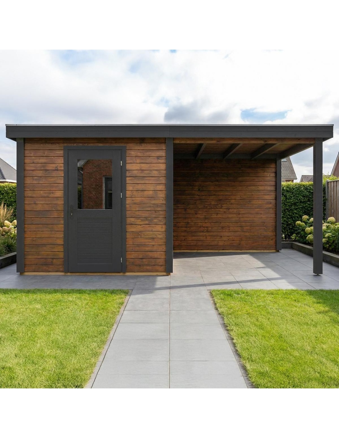 (!) Das Produkt enthält keine Dacheindeckung und kein Wasserableitungssystem – es ist notwendig, eine EPDM-Folie mit Montageprofilen sowie ein Fallrohr zur Dachentwässerung zu erwerben, um Schutz vor Witterungseinflüssen zu gewährleisten.