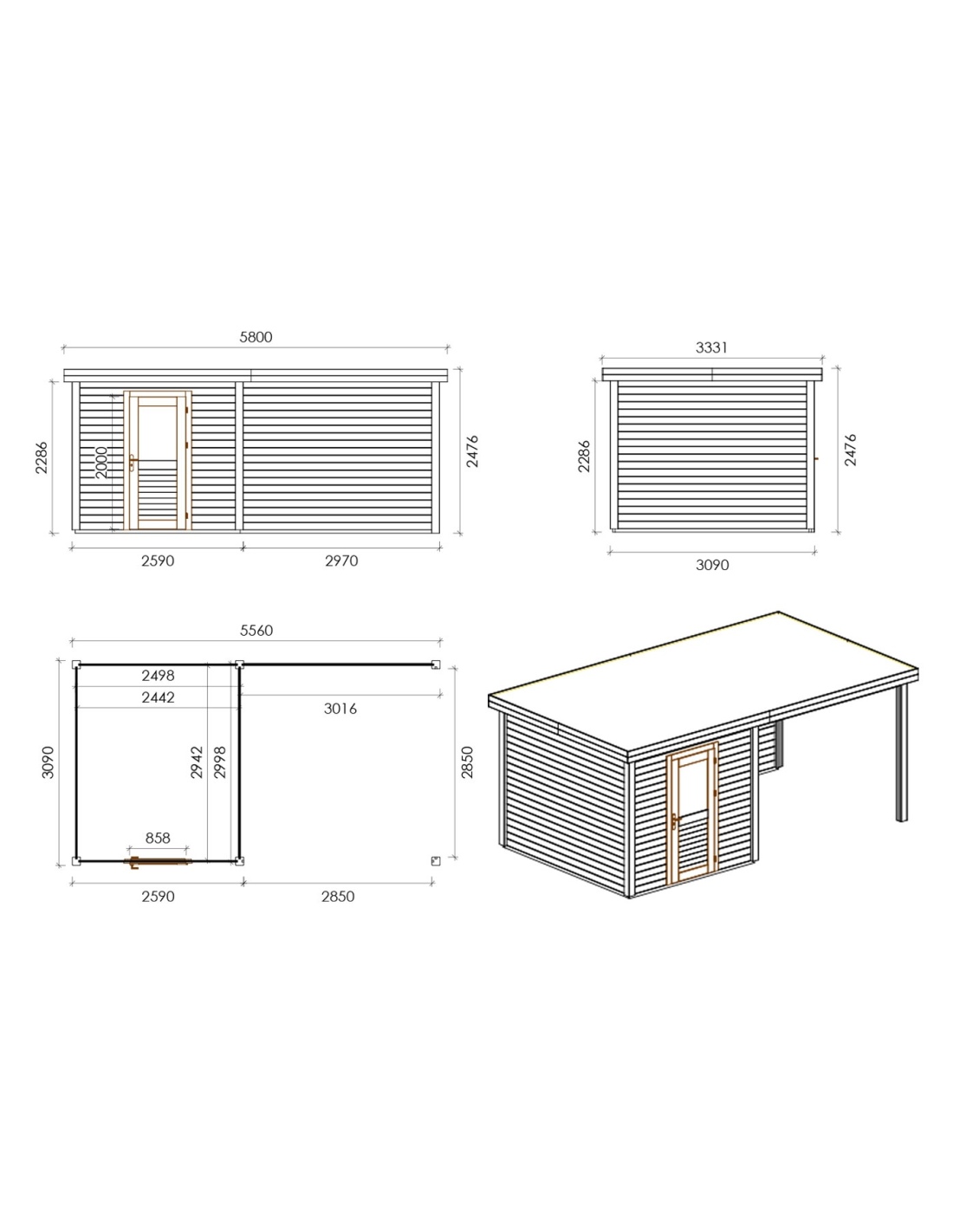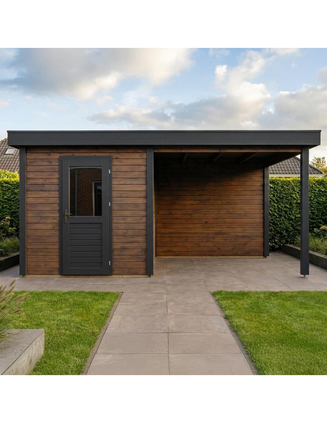 (!) Das Produkt enthält keine Dacheindeckung und kein Wasserableitungssystem – es ist notwendig, eine EPDM-Folie mit Montageprofilen sowie ein Fallrohr zur Dachentwässerung zu erwerben, um Schutz vor Witterungseinflüssen zu gewährleisten.