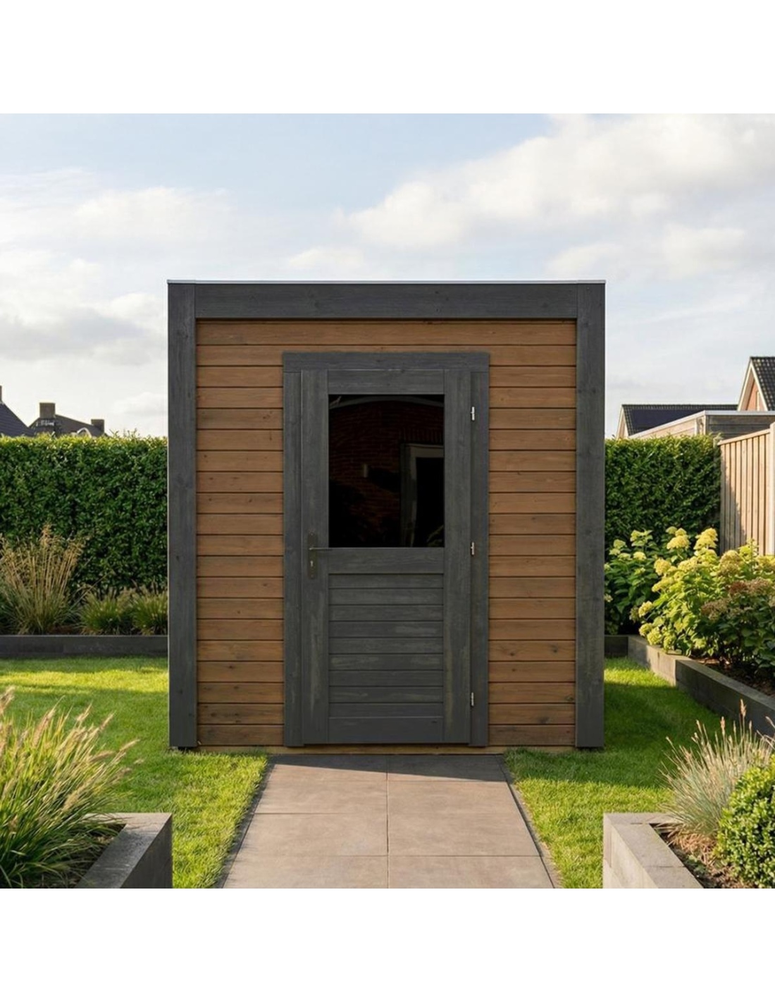Das Gartenhaus aus Holz ist aus getrocknetem Fichtenholz gefertigt.