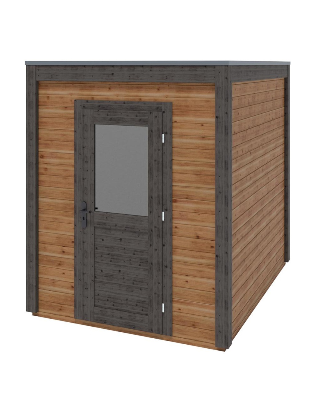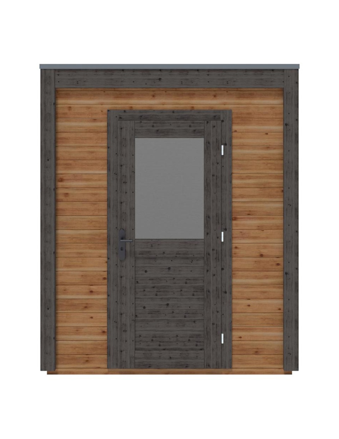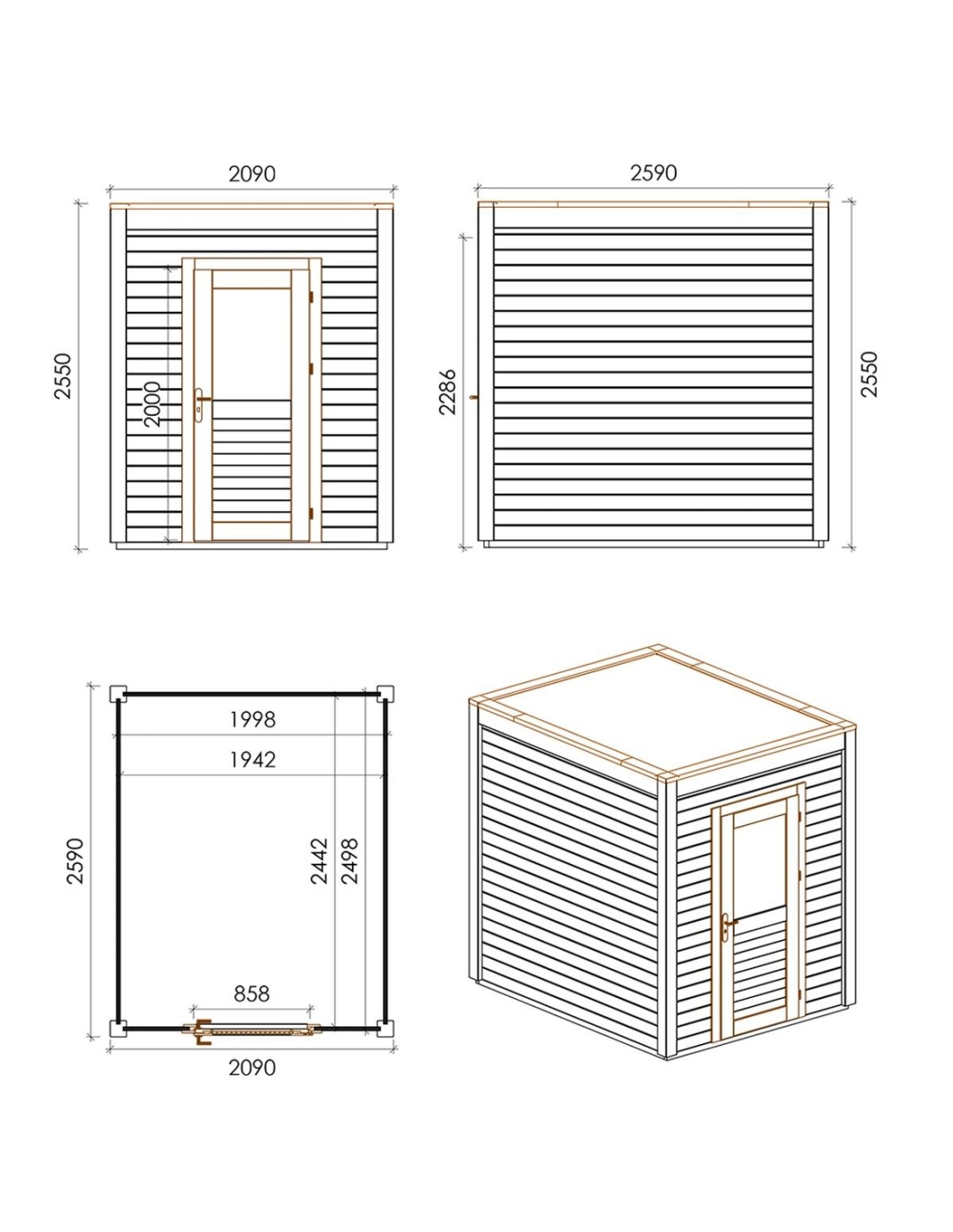 Die Fotos zeigen das Holzhaus 000065 mit der Fläche von 5.41 m2, Frontbreite von 2.09M und Tiefe von 2.59M.