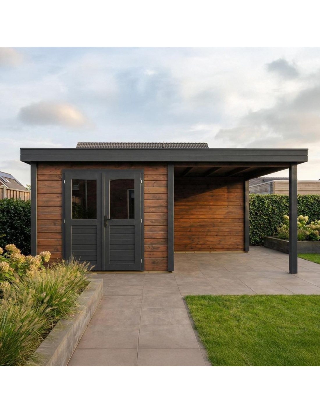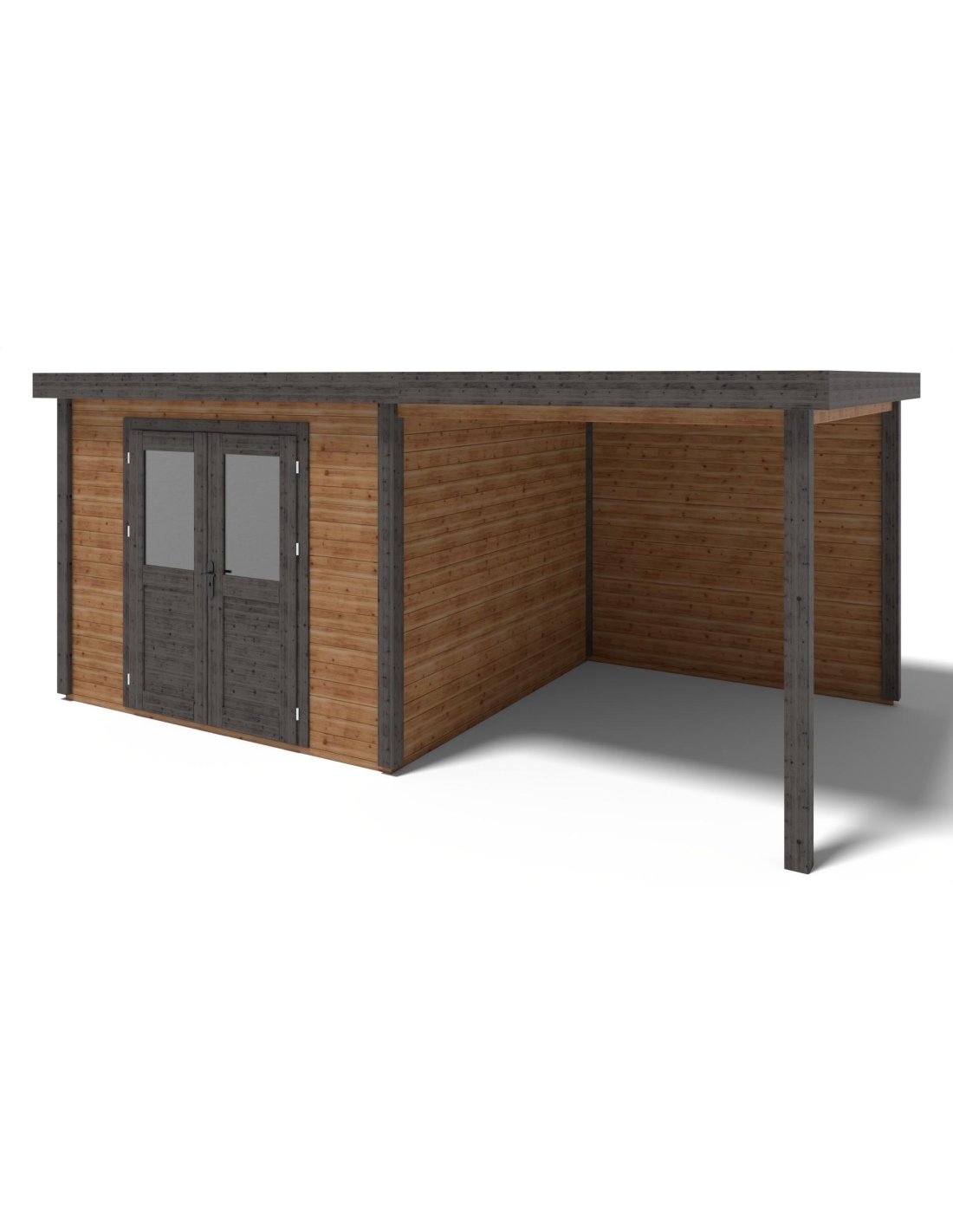 (!) Das Produkt enthält keine Dacheindeckung und kein Wasserableitungssystem – es ist notwendig, eine EPDM-Folie mit Montageprofilen sowie ein Fallrohr zur Dachentwässerung zu erwerben, um Schutz vor Witterungseinflüssen zu gewährleisten.