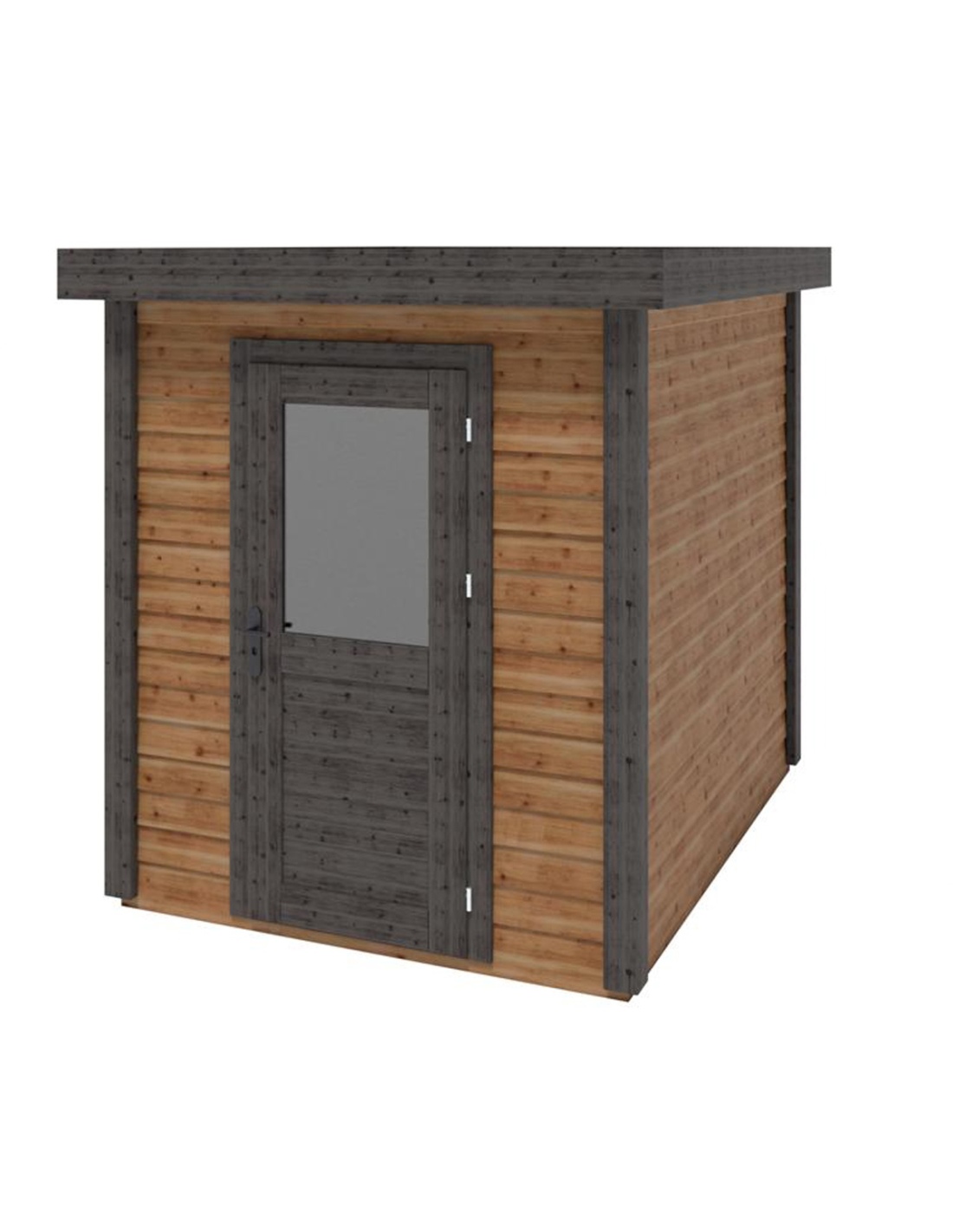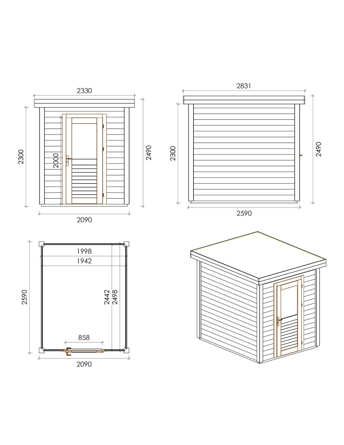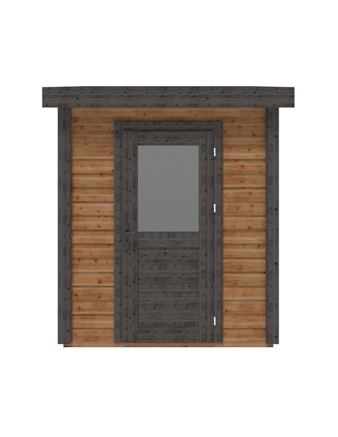 Die Fotos zeigen das Holzhaus 000114 mit der Fläche von 5.41 m2, Frontbreite von 2.09M und Tiefe von 2.59M.
