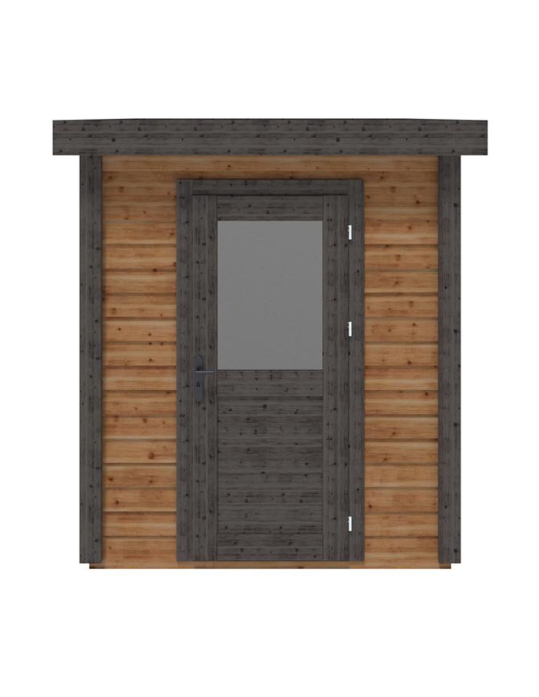 Die Fotos zeigen das Holzhaus 000115 mit der Fläche von 6.46 m2, Frontbreite von 2.09M und Tiefe von 3.09M.