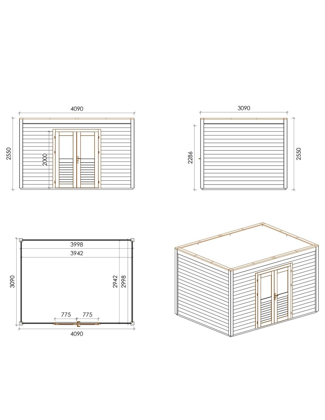 * - Der Fußboden ist nicht im Preis inbegriffen. Gartenhaus aus Holz 000173 von ALTANKA p.s.a. ist idealer Ort zum Entspannen und zum Spaß für die ganze Familie. Das Haus ist aus hochwertigem Holz gefertigt. Es ist 4.09M breit und 3.09M tief, was viel Platz innen bietet.