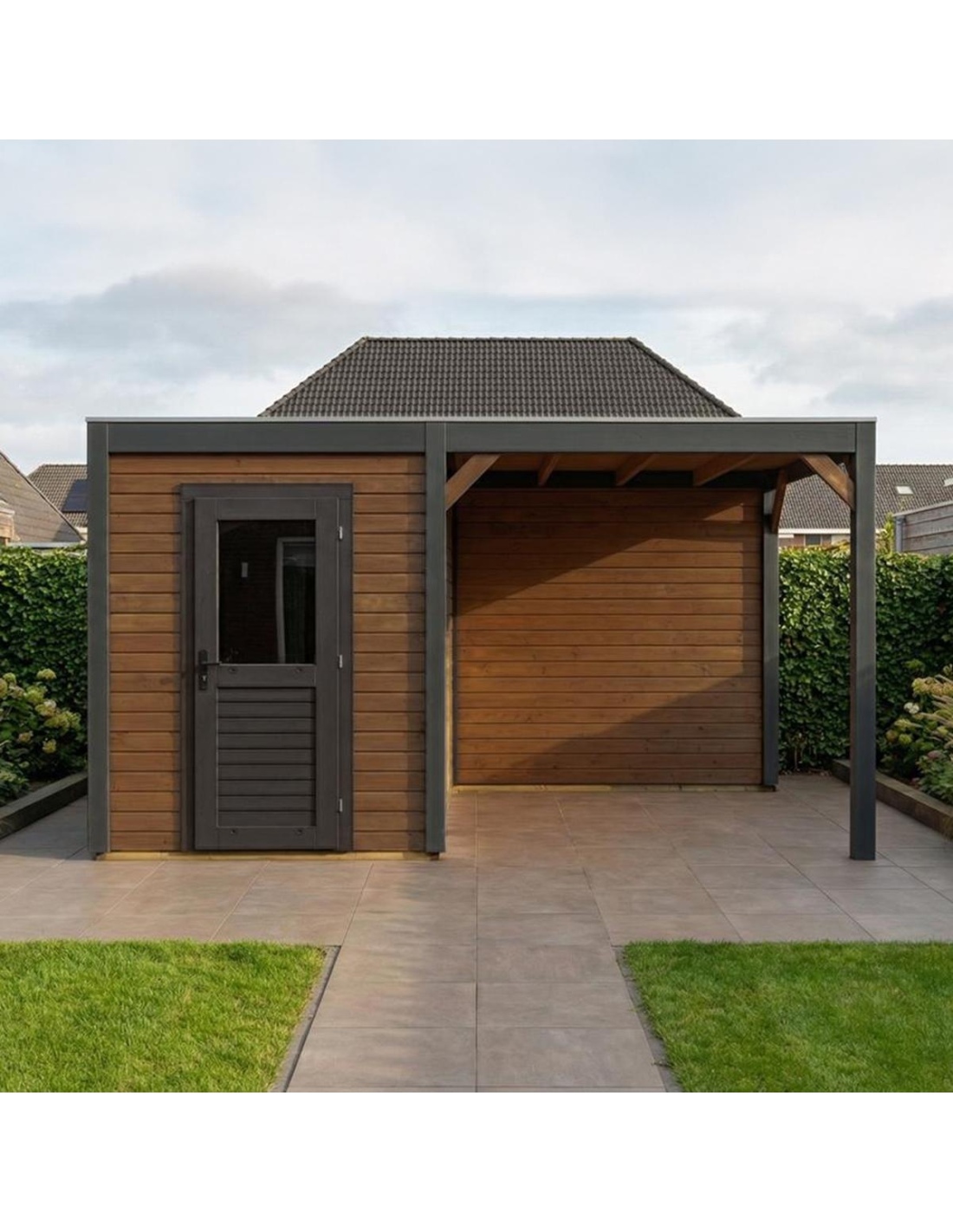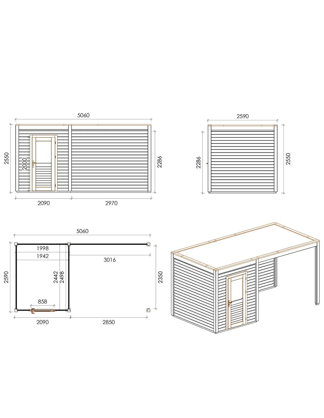 (!) Das Produkt enthält keine Dacheindeckung und kein Wasserableitungssystem – es ist notwendig, eine EPDM-Folie mit Montageprofilen sowie ein Fallrohr zur Dachentwässerung zu erwerben, um Schutz vor Witterungseinflüssen zu gewährleisten.