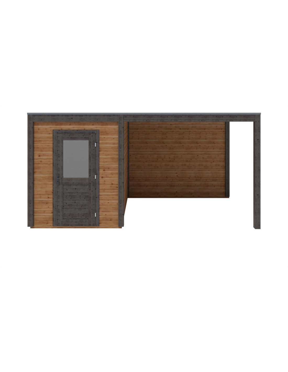 Die Fotos zeigen das Holzhaus 000089 mit der Fläche von 13.11 m2, Frontbreite von 5.06M und Tiefe von 2.59M.