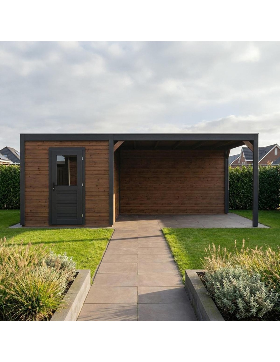 (!) Das Produkt enthält keine Dacheindeckung und kein Wasserableitungssystem – es ist notwendig, eine EPDM-Folie mit Montageprofilen sowie ein Fallrohr zur Dachentwässerung zu erwerben, um Schutz vor Witterungseinflüssen zu gewährleisten.