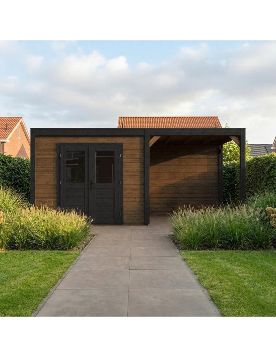(!) Das Produkt enthält keine Dacheindeckung und kein Wasserableitungssystem – es ist notwendig, eine EPDM-Folie mit Montageprofilen sowie ein Fallrohr zur Dachentwässerung zu erwerben, um Schutz vor Witterungseinflüssen zu gewährleisten.