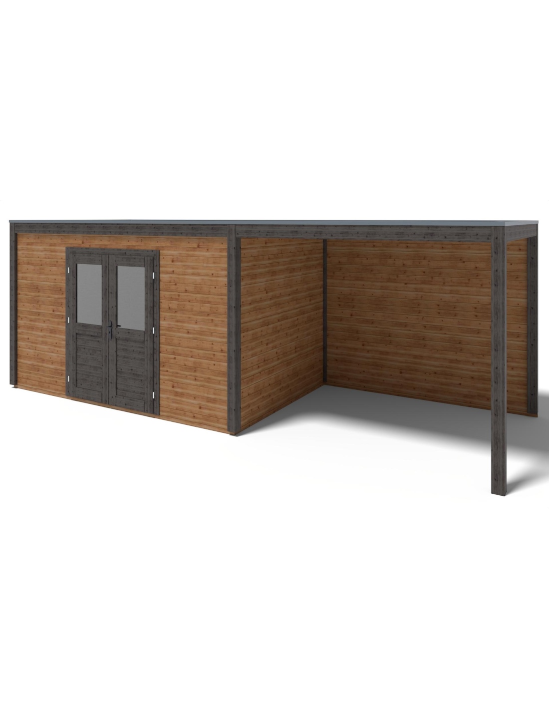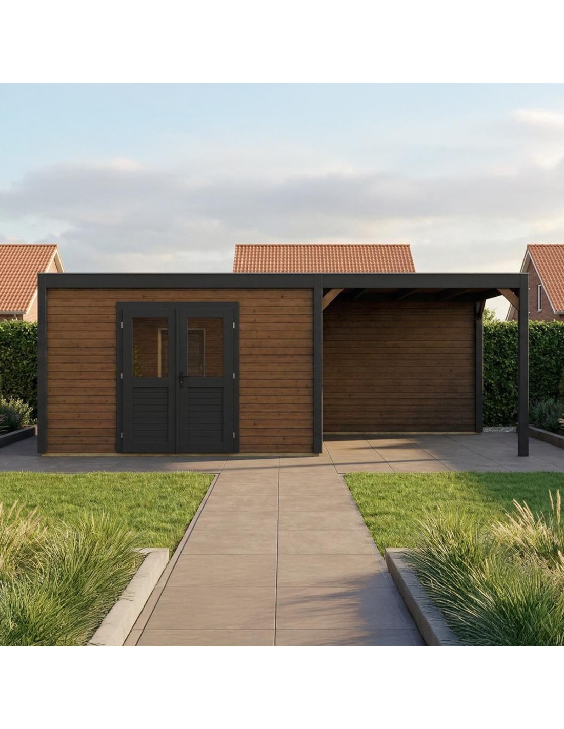 (!) Das Produkt enthält keine Dacheindeckung und kein Wasserableitungssystem – es ist notwendig, eine EPDM-Folie mit Montageprofilen sowie ein Fallrohr zur Dachentwässerung zu erwerben, um Schutz vor Witterungseinflüssen zu gewährleisten.