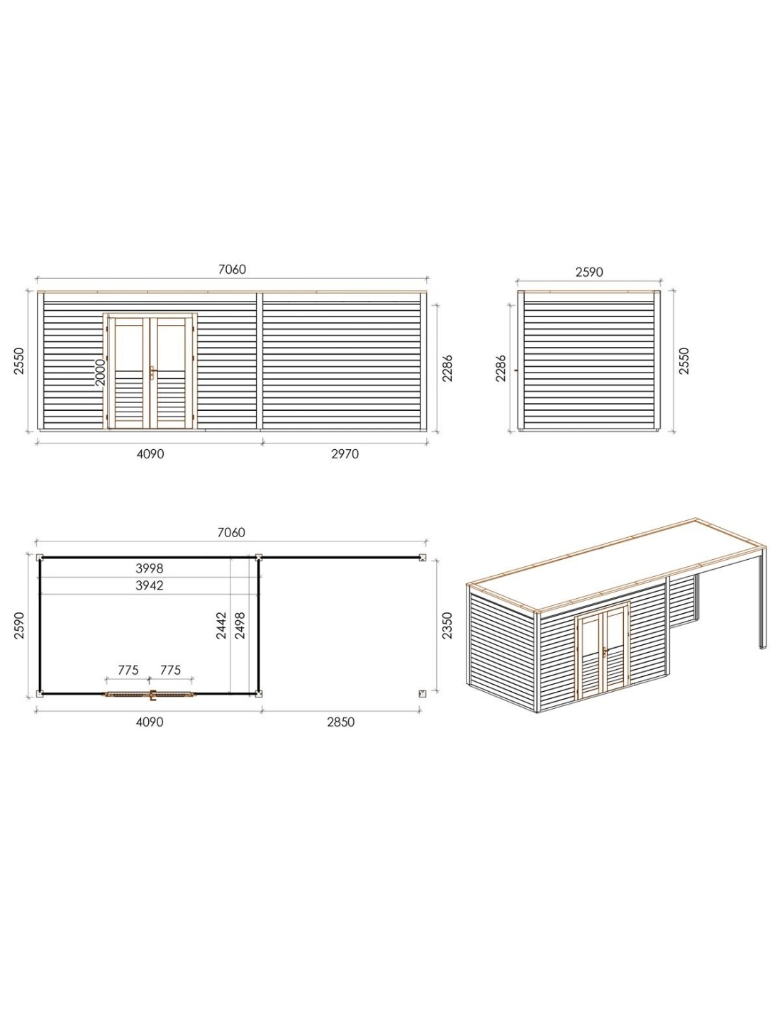 * - Der Fußboden ist nicht im Preis inbegriffen. Gartenhaus aus Holz 000104 von ALTANKA p.s.a. ist idealer Ort zum Entspannen und zum Spaß für die ganze Familie. Das Haus ist aus hochwertigem Holz gefertigt. Es ist 7.06M breit und 2.59M tief, was viel Platz innen bietet.