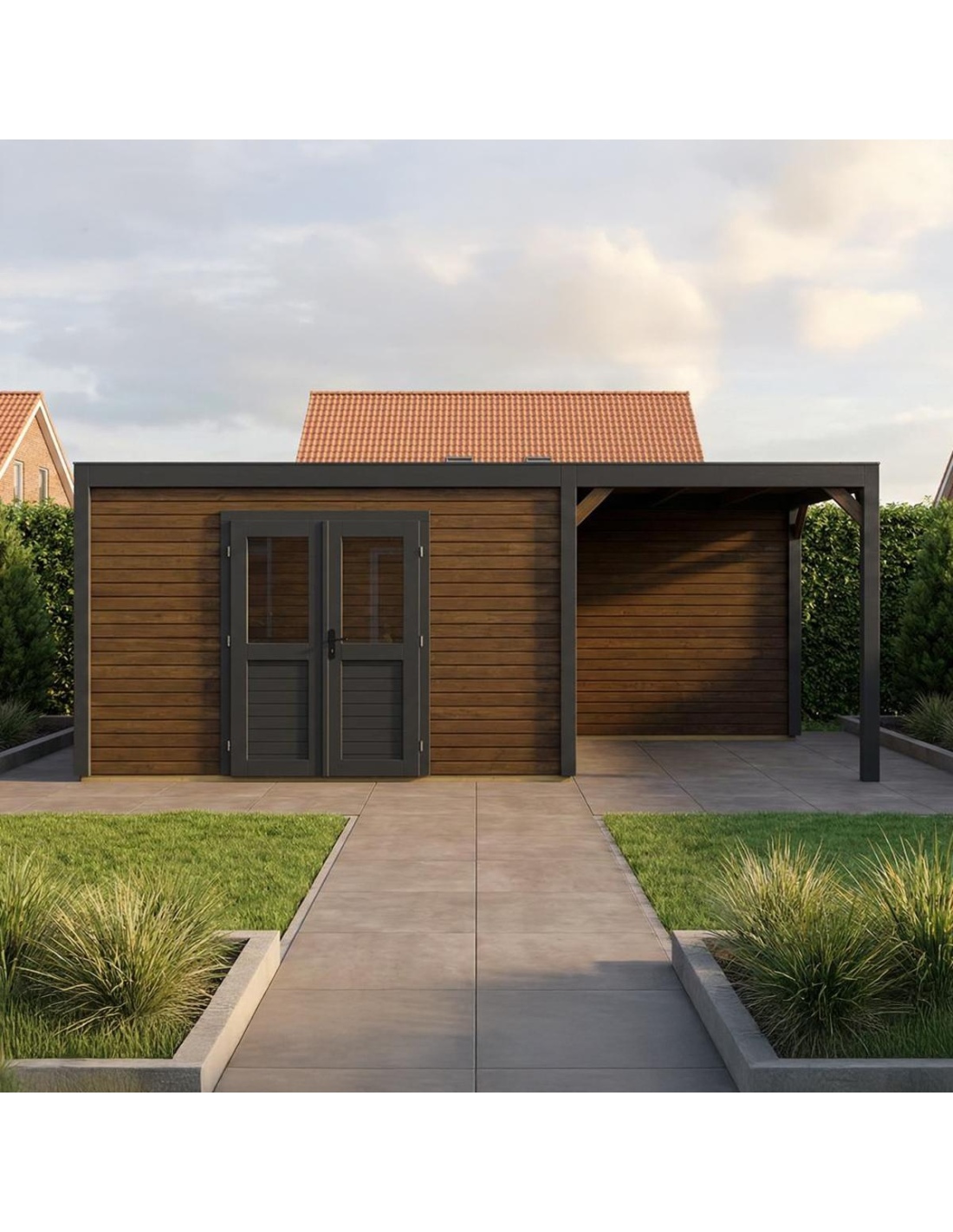 (!) Das Produkt enthält keine Dacheindeckung und kein Wasserableitungssystem – es ist notwendig, eine EPDM-Folie mit Montageprofilen sowie ein Fallrohr zur Dachentwässerung zu erwerben, um Schutz vor Witterungseinflüssen zu gewährleisten.