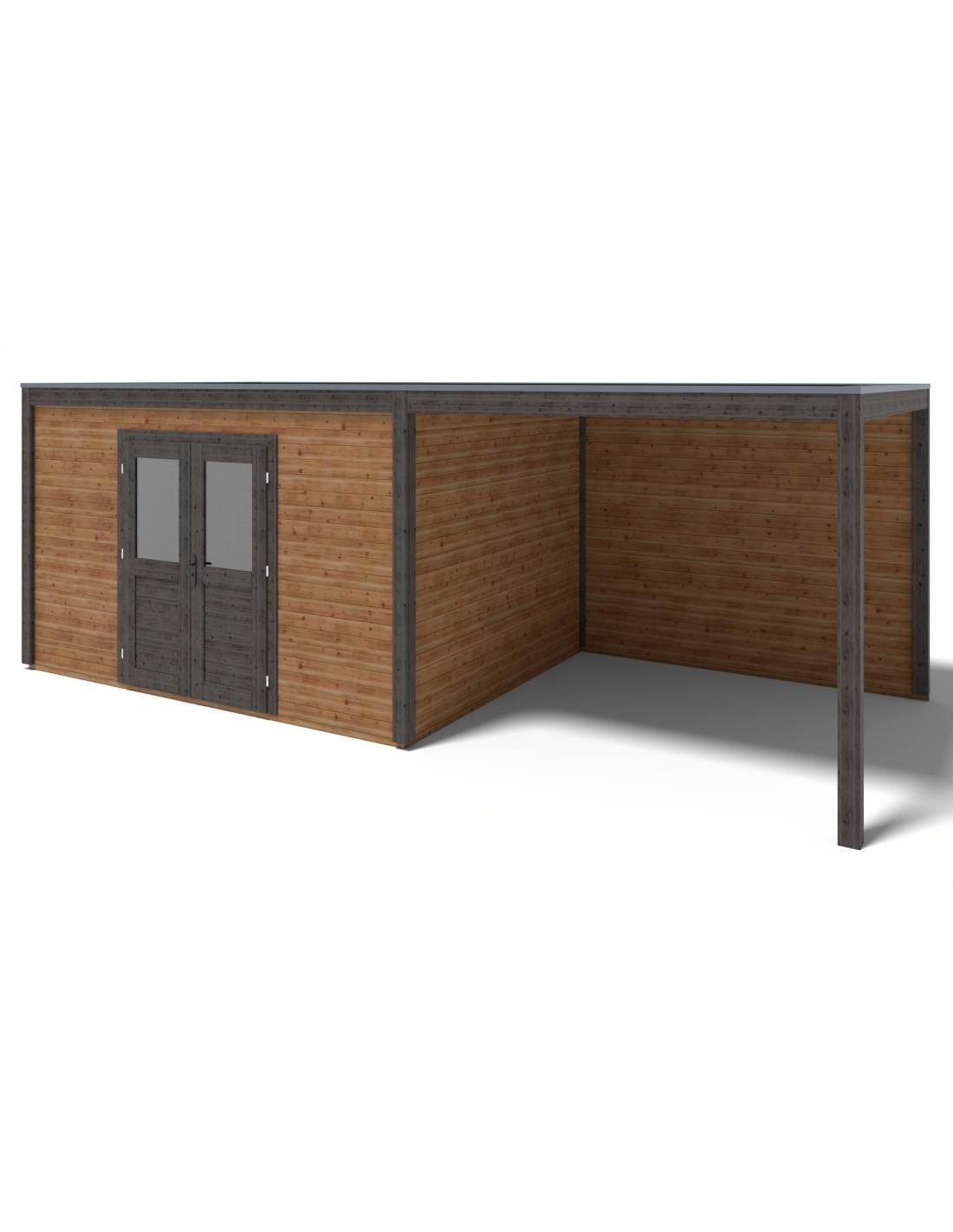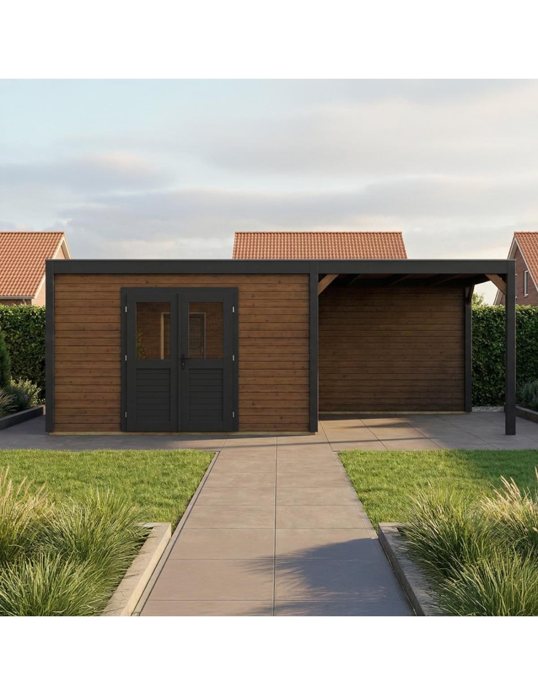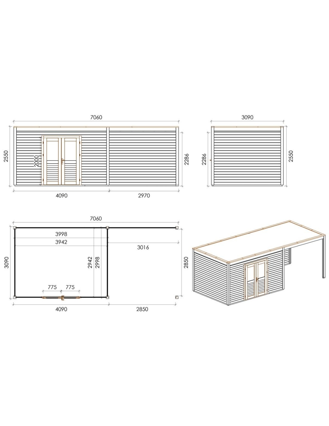 (!) Das Produkt enthält keine Dacheindeckung und kein Wasserableitungssystem – es ist notwendig, eine EPDM-Folie mit Montageprofilen sowie ein Fallrohr zur Dachentwässerung zu erwerben, um Schutz vor Witterungseinflüssen zu gewährleisten.