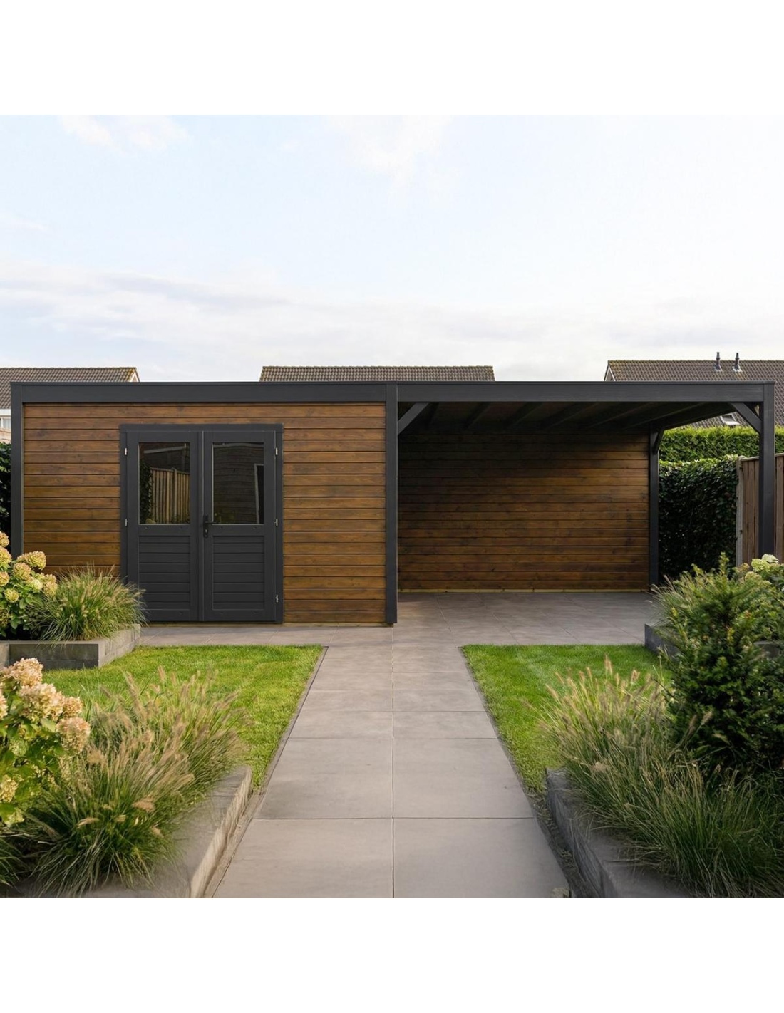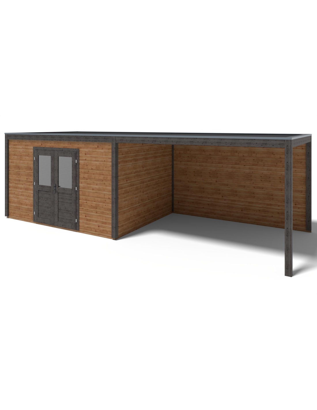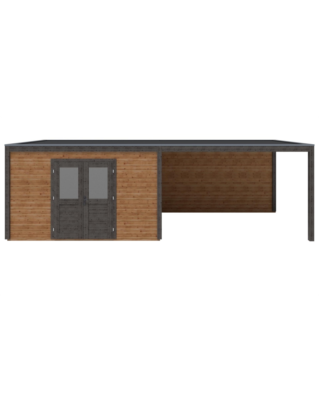 (!) Das Produkt enthält keine Dacheindeckung und kein Wasserableitungssystem – es ist notwendig, eine EPDM-Folie mit Montageprofilen sowie ein Fallrohr zur Dachentwässerung zu erwerben, um Schutz vor Witterungseinflüssen zu gewährleisten.