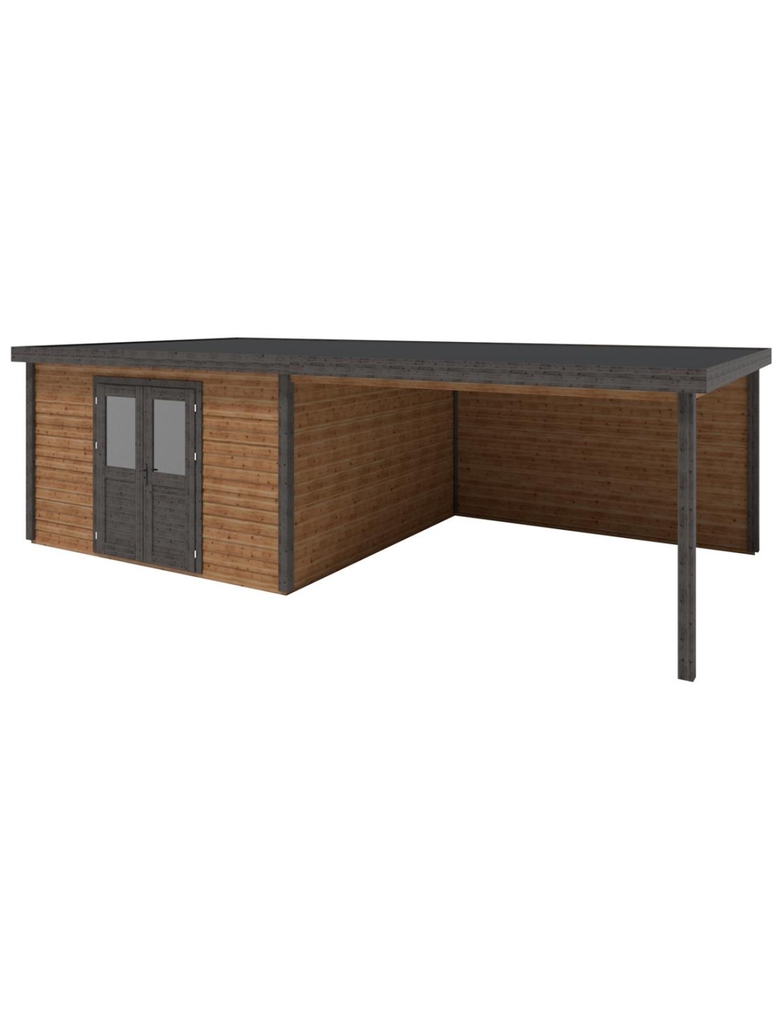 (!) Das Produkt enthält keine Dacheindeckung und kein Wasserableitungssystem – es ist notwendig, eine EPDM-Folie mit Montageprofilen sowie ein Fallrohr zur Dachentwässerung zu erwerben, um Schutz vor Witterungseinflüssen zu gewährleisten.