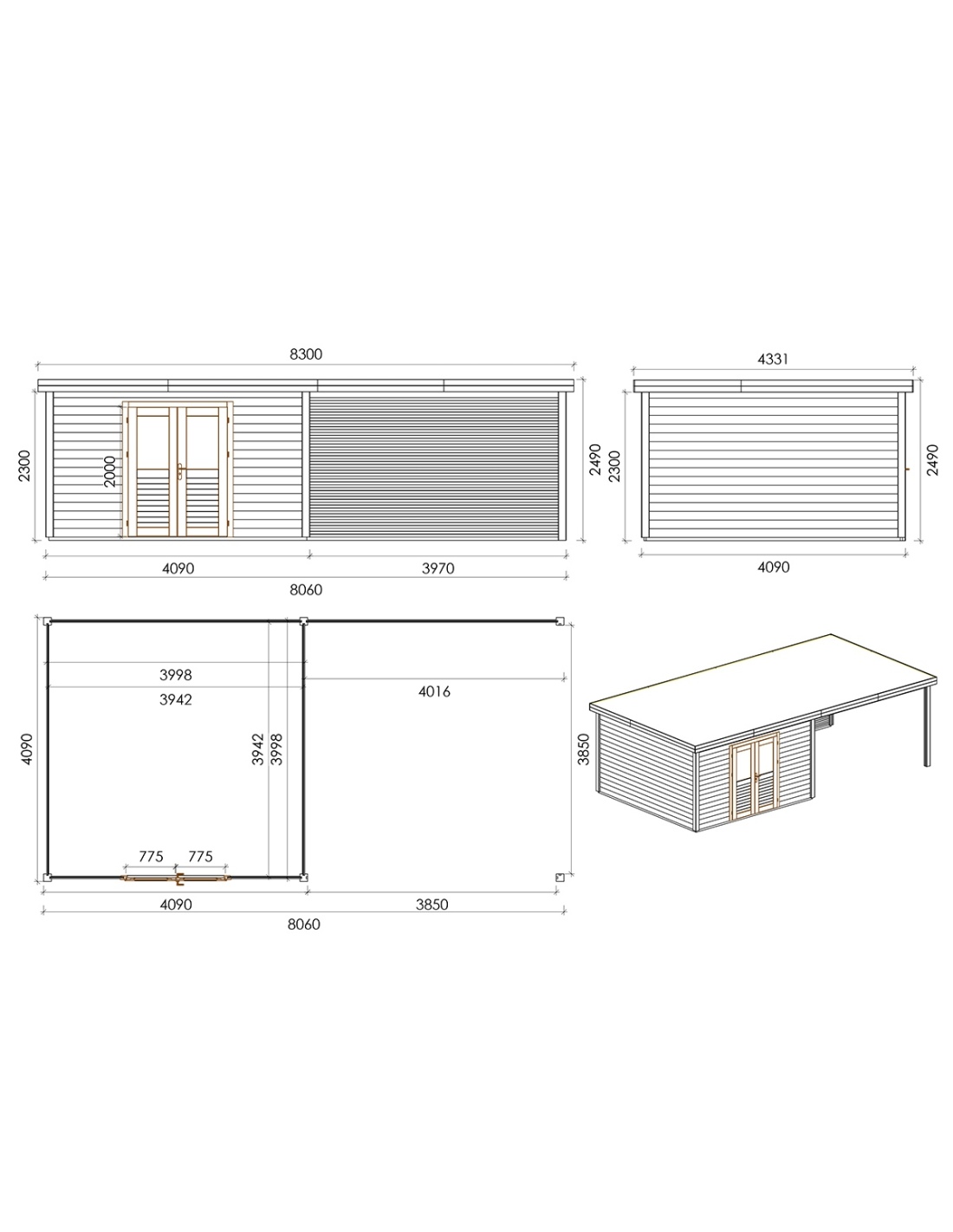 * - Der Fußboden ist nicht im Preis inbegriffen. Gartenhaus aus Holz 000209 von ALTANKA p.s.a. ist idealer Ort zum Entspannen und zum Spaß für die ganze Familie. Das Haus ist aus hochwertigem Holz gefertigt. Es ist 8.06M breit und 4.09M tief, was viel Platz innen bietet.
