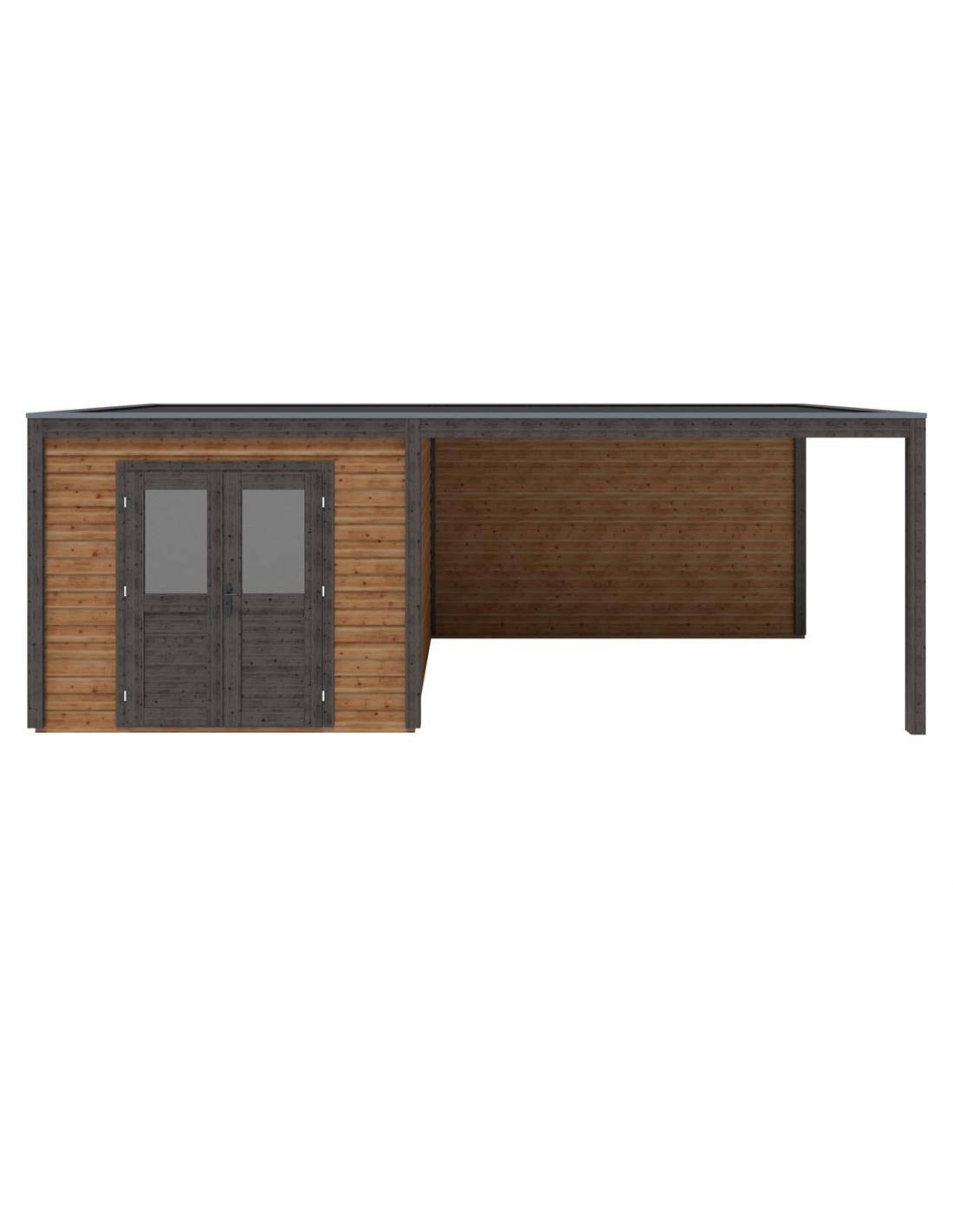 (!) Das Produkt enthält keine Dacheindeckung und kein Wasserableitungssystem – es ist notwendig, eine EPDM-Folie mit Montageprofilen sowie ein Fallrohr zur Dachentwässerung zu erwerben, um Schutz vor Witterungseinflüssen zu gewährleisten.
