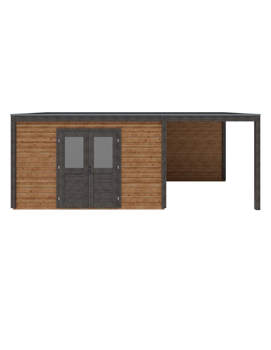(!) Das Produkt enthält keine Dacheindeckung und kein Wasserableitungssystem – es ist notwendig, eine EPDM-Folie mit Montageprofilen sowie ein Fallrohr zur Dachentwässerung zu erwerben, um Schutz vor Witterungseinflüssen zu gewährleisten.