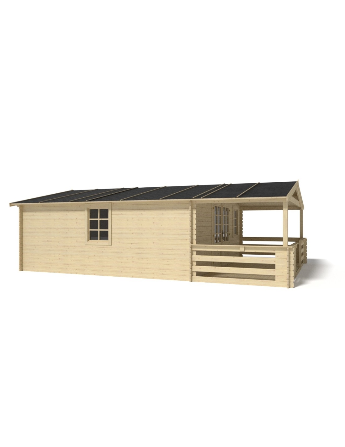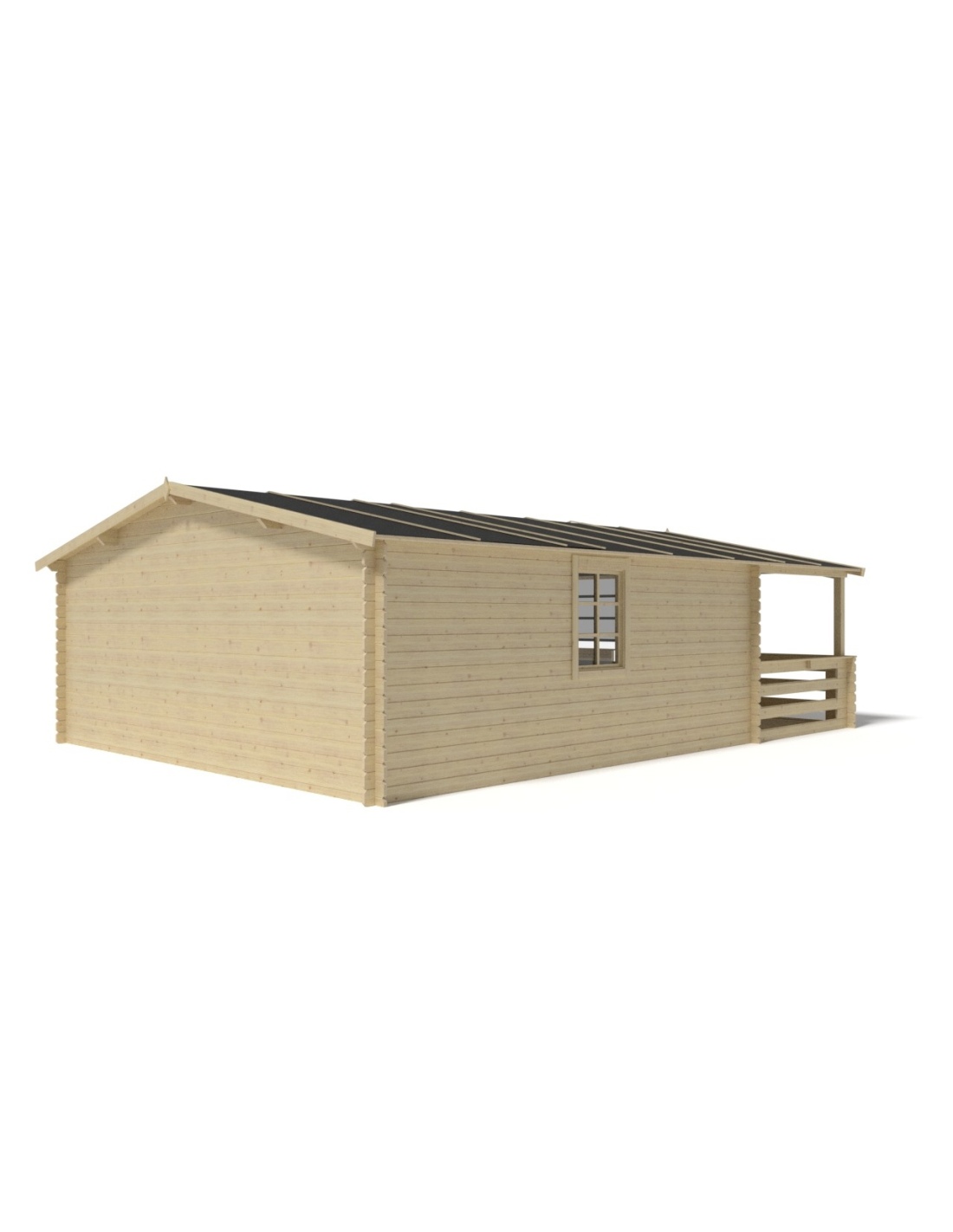 Die Fotos zeigen das Holzhaus DOM591+DOM600+DOM601+POD04 mit der Fläche von 35 m2, Frontbreite von 5M und Tiefe von 5M.