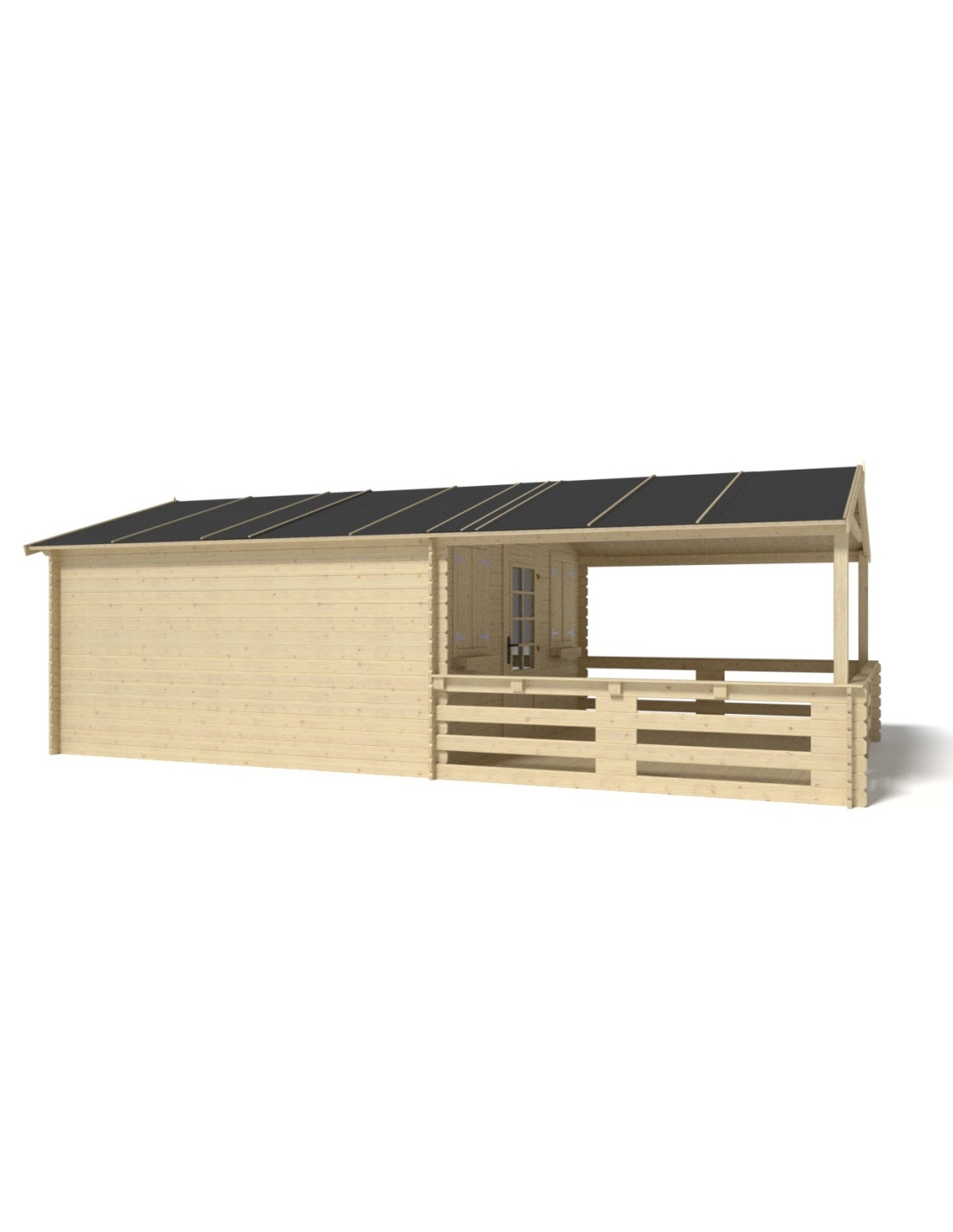 Die Fotos zeigen das Holzhaus DOM137+DOM392+DOM393+POD04 mit der Fläche von 24 m2, Frontbreite von 4M und Tiefe von 3M.