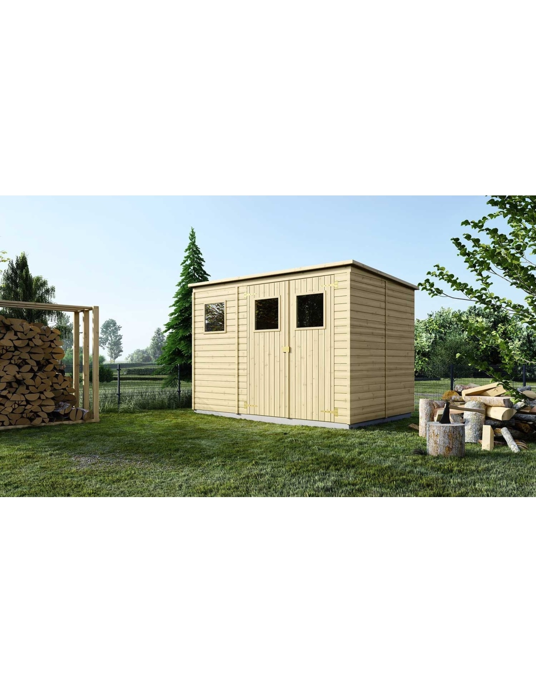 Das Holzgerätehaus DOM421 ist nicht imprägniert. Es sollte sofort mit handelsüblichen Holzschutzmitteln geschützt werden. Nochmalige Nachwartung sollte je nach Bedarf durchgeführt werden, jedoch nicht seltener als 2 Jahre. Es ist jedoch zu bedenken, dass Holz ein lebendiges Material ist, der natürliche Lauf der Dinge ist die Tatsache, dass es mit Temperatur- und Feuchtigkeitsänderungen arbeitet. Die Veränderung der Farbe des Holzes und seiner Struktur hängt von den Lagerbedingungen ab und hat keinen Einfluss auf die Qualität.