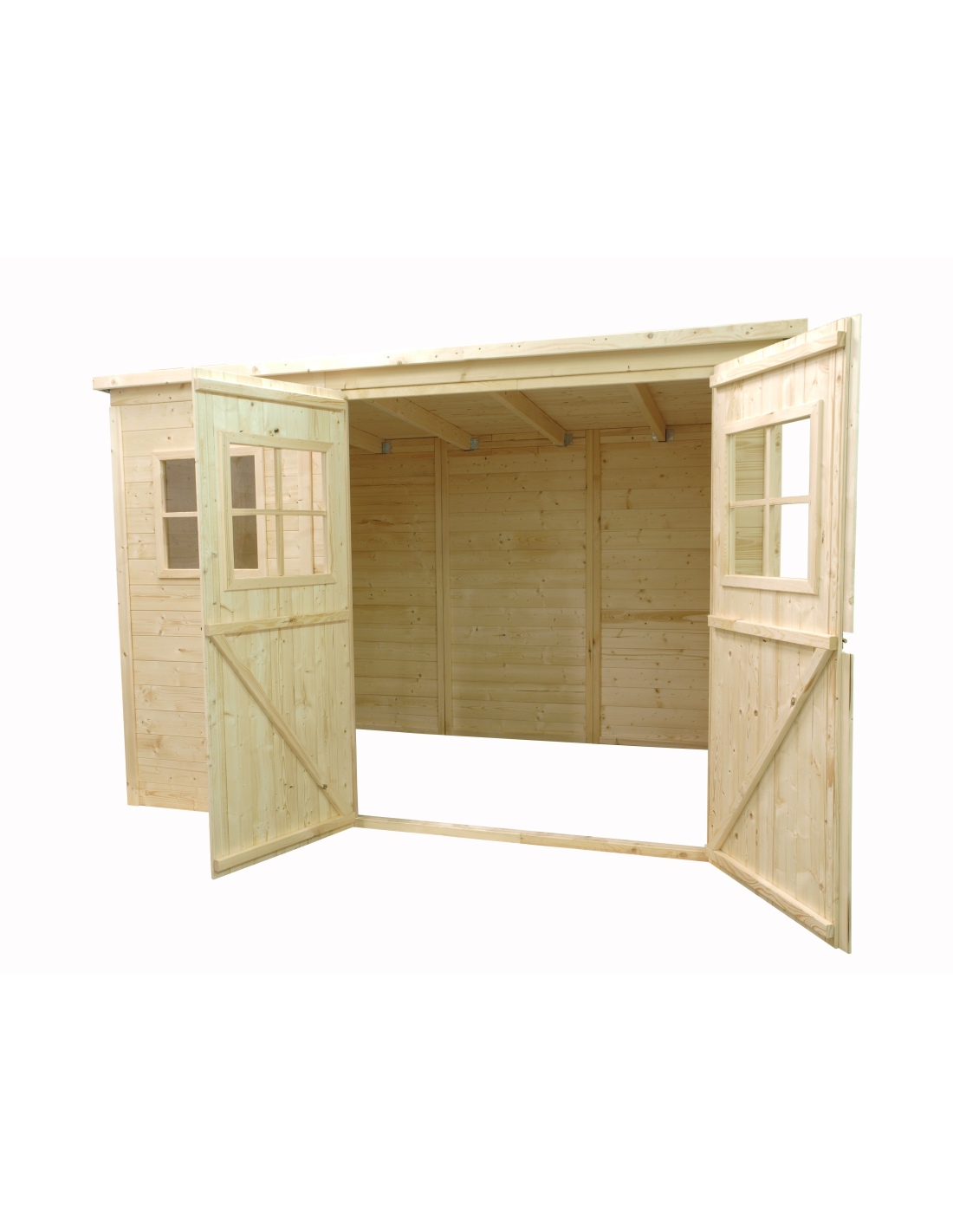 Gartenhaus aus Holz DOM421 von ALTANKA p.s.a. Es ist aus hochwertigem Holz gefertigt. Es ist 2.7M breit und 1.8M tief.
