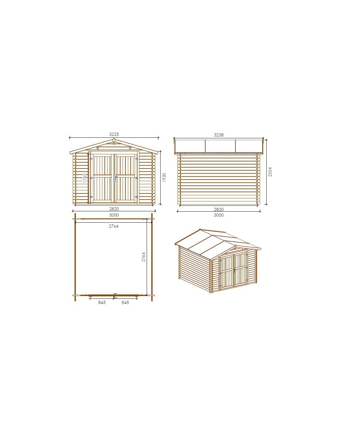 - Gartenhaus aus Holz DOM531+DOM394+DOM395+POD04