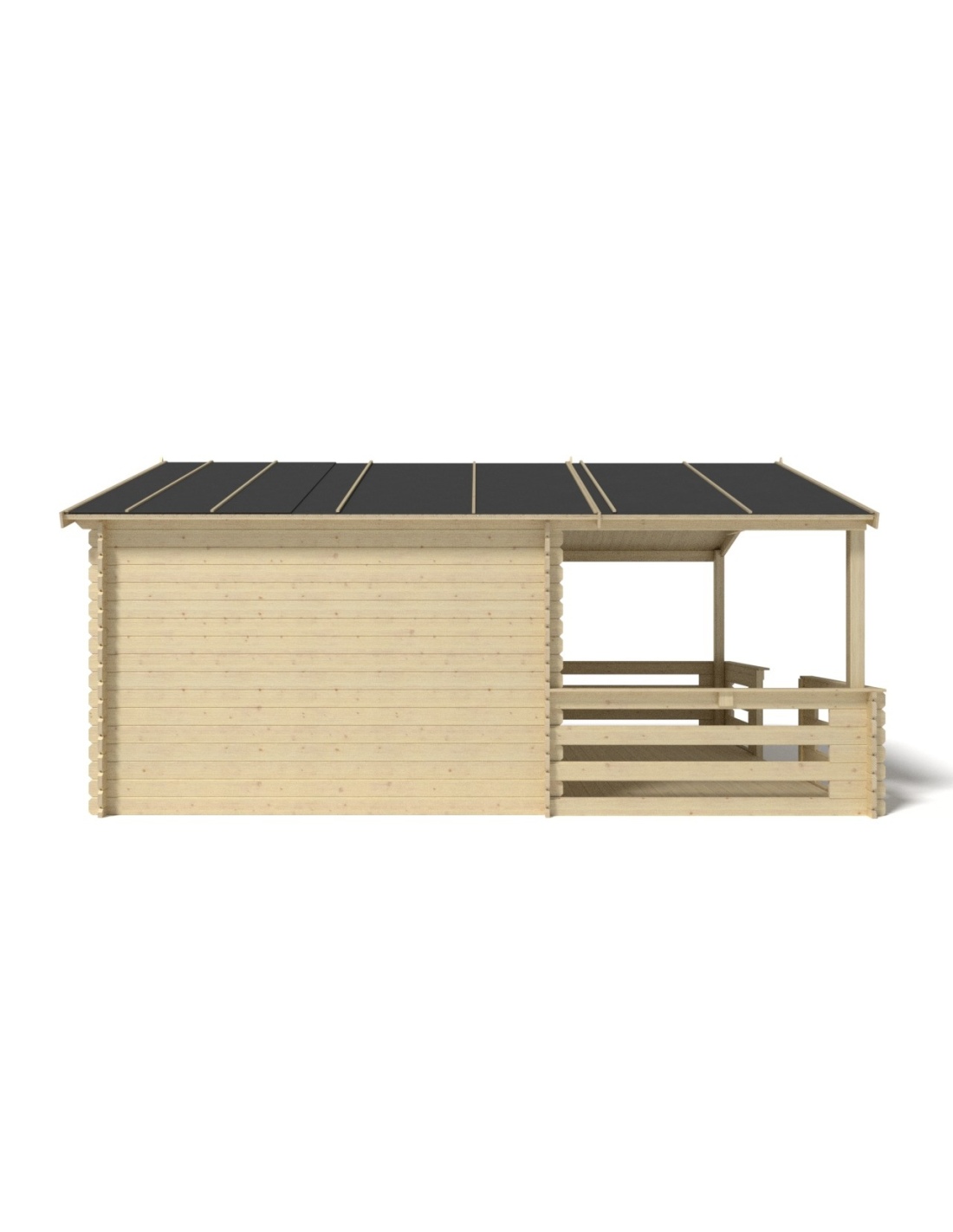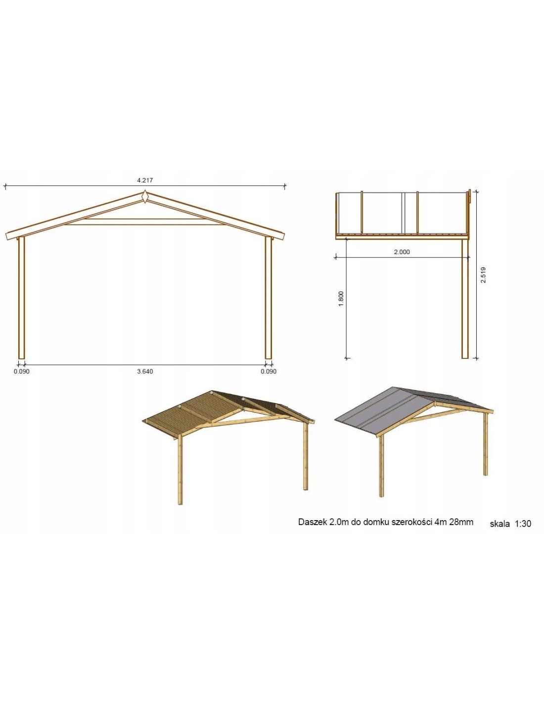 Die Fotos zeigen das Holzhaus DOM337+DOM17+DOM18+POD04 mit der Fläche von 20 m2, Frontbreite von 4M und Tiefe von 3M.