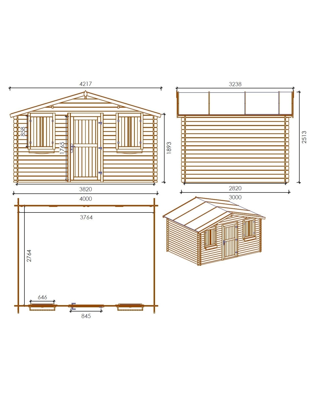 - Gartenhaus aus Holz DOM337+DOM392+DOM393+POD04