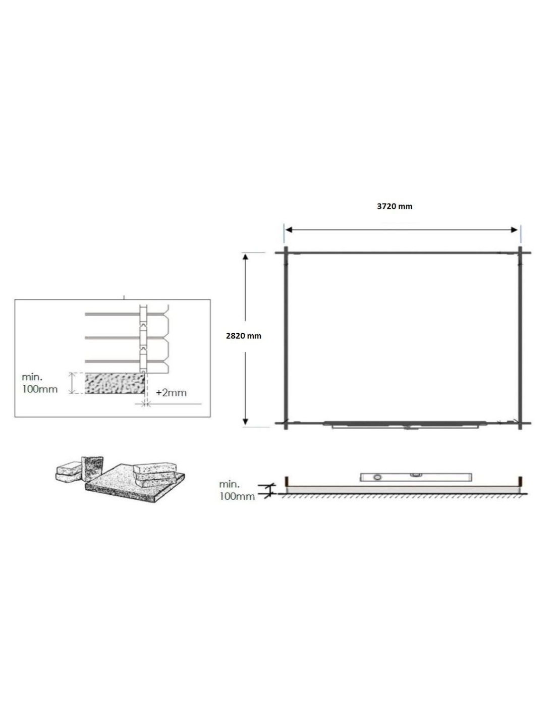- Überdachung: OSB-Platte + Dachpappe + Leisten