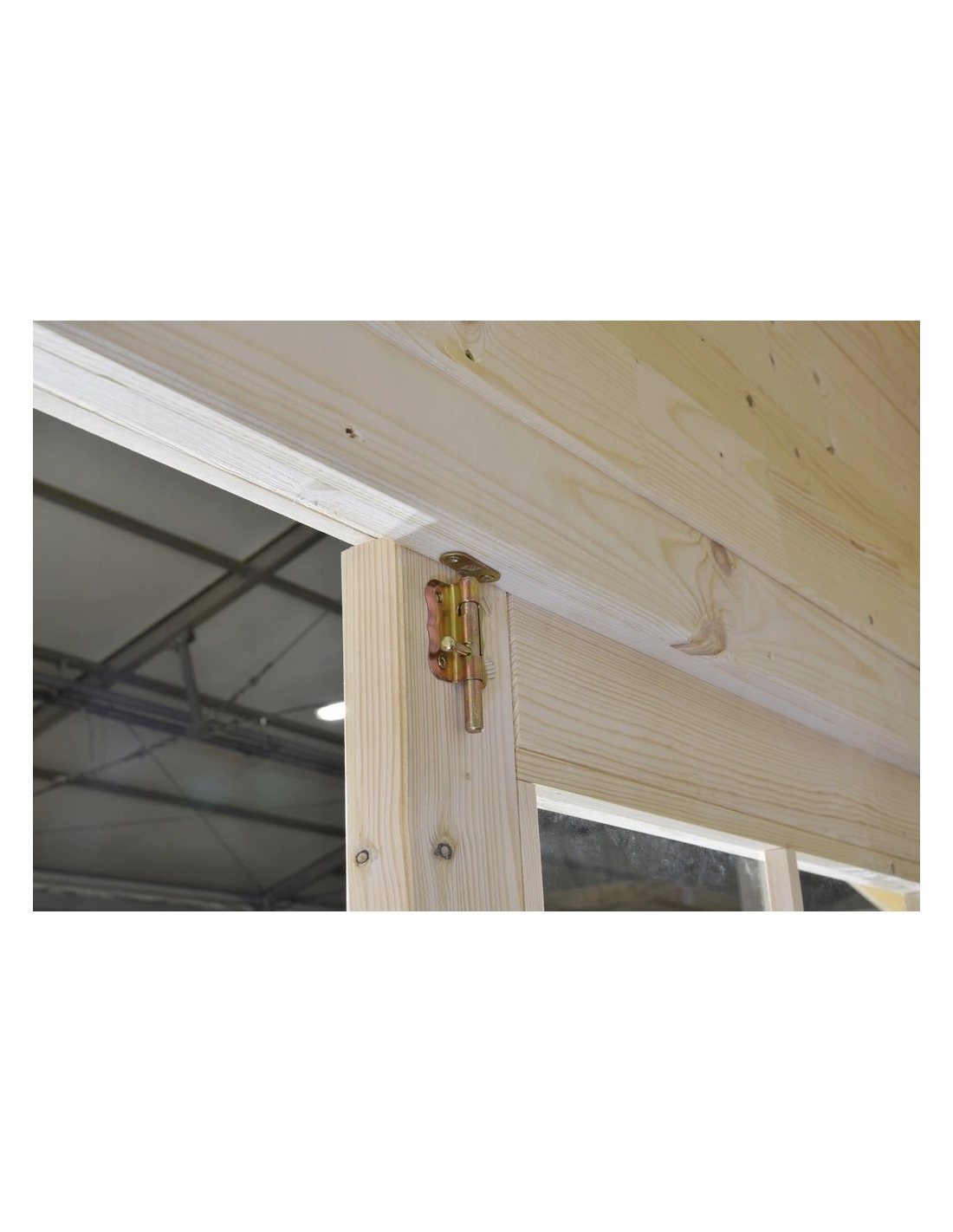 Das Gartenhaus aus Holz ist aus getrocknetem Fichtenholz gefertigt. Kann geklebte Elemente enthalten (z. B. Bretter mit den Mikrobolzen).