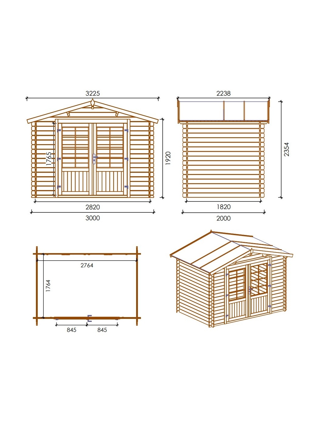 - Gartenhaus aus Holz DOM420+DOM394+DOM395+POD04