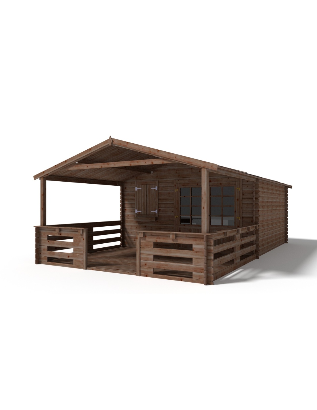 Die Fotos zeigen das Holzhaus DOM595+DOM541+DOM542+POD05 mit der Fläche von 24 m2, Frontbreite von 4M und Tiefe von 3M.