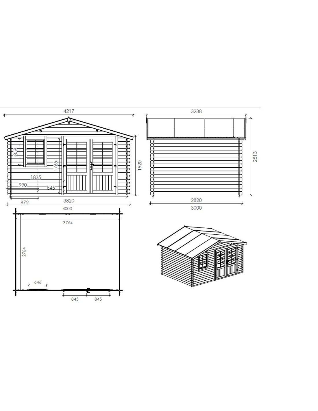 - Gartenhaus aus Holz DOM595+DOM541+DOM542+POD05
