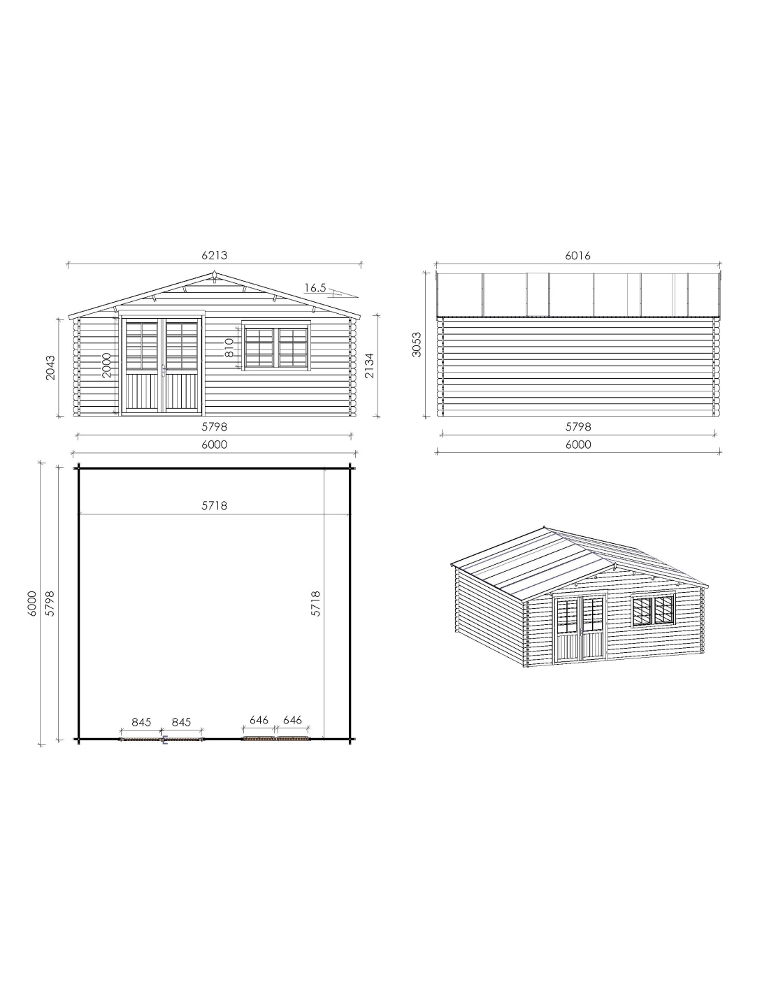 - Gartenhaus aus Holz DOM610+DOM556+DOM558+POD04
