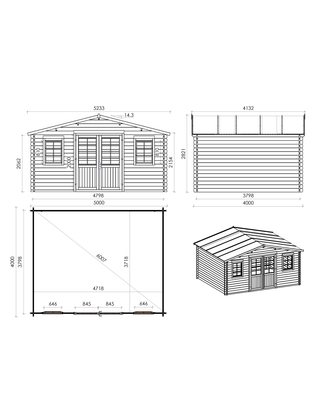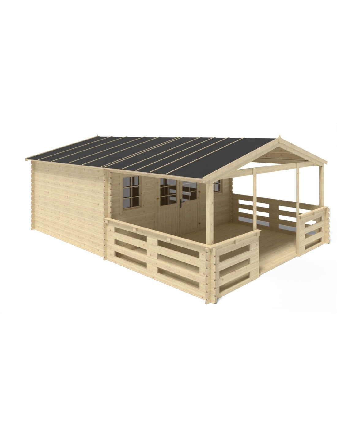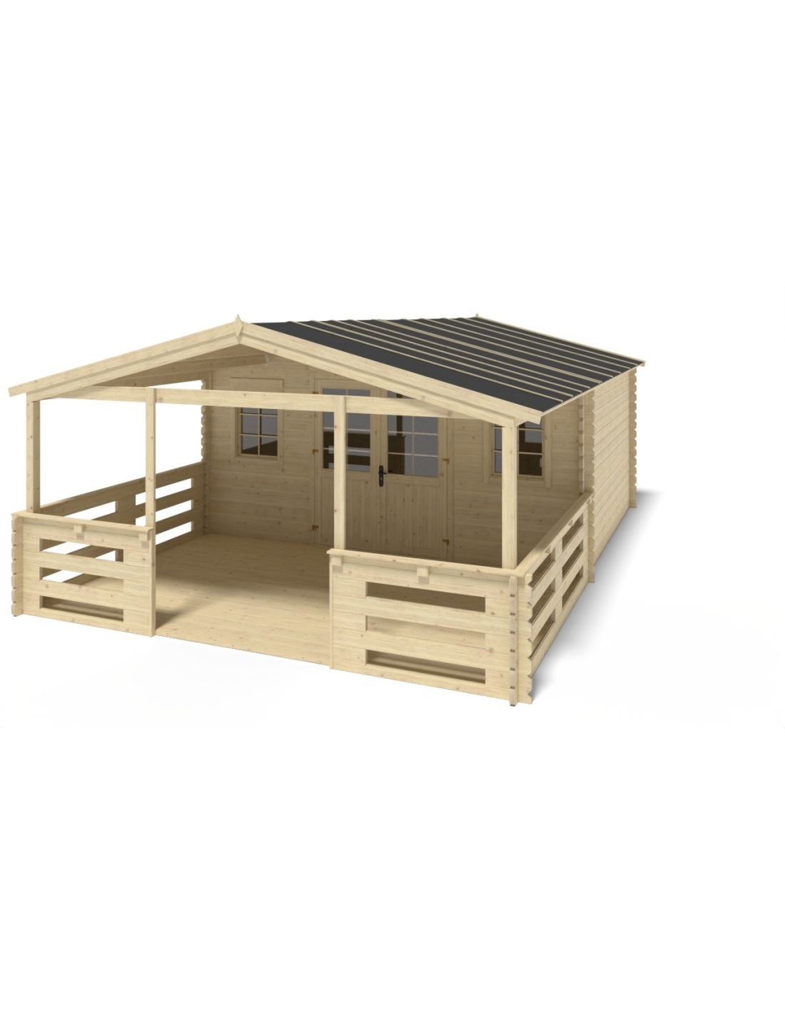 Gartenhaus aus Holz DOM598+DOM614+DOM616+POD04 von ALTANKA p.s.a. ist idealer Ort zum Entspannen und zum Spaß für die ganze Familie. Das Haus ist aus hochwertigem Holz gefertigt. Es ist 5M breit und 4M tief, was viel Platz innen bietet.