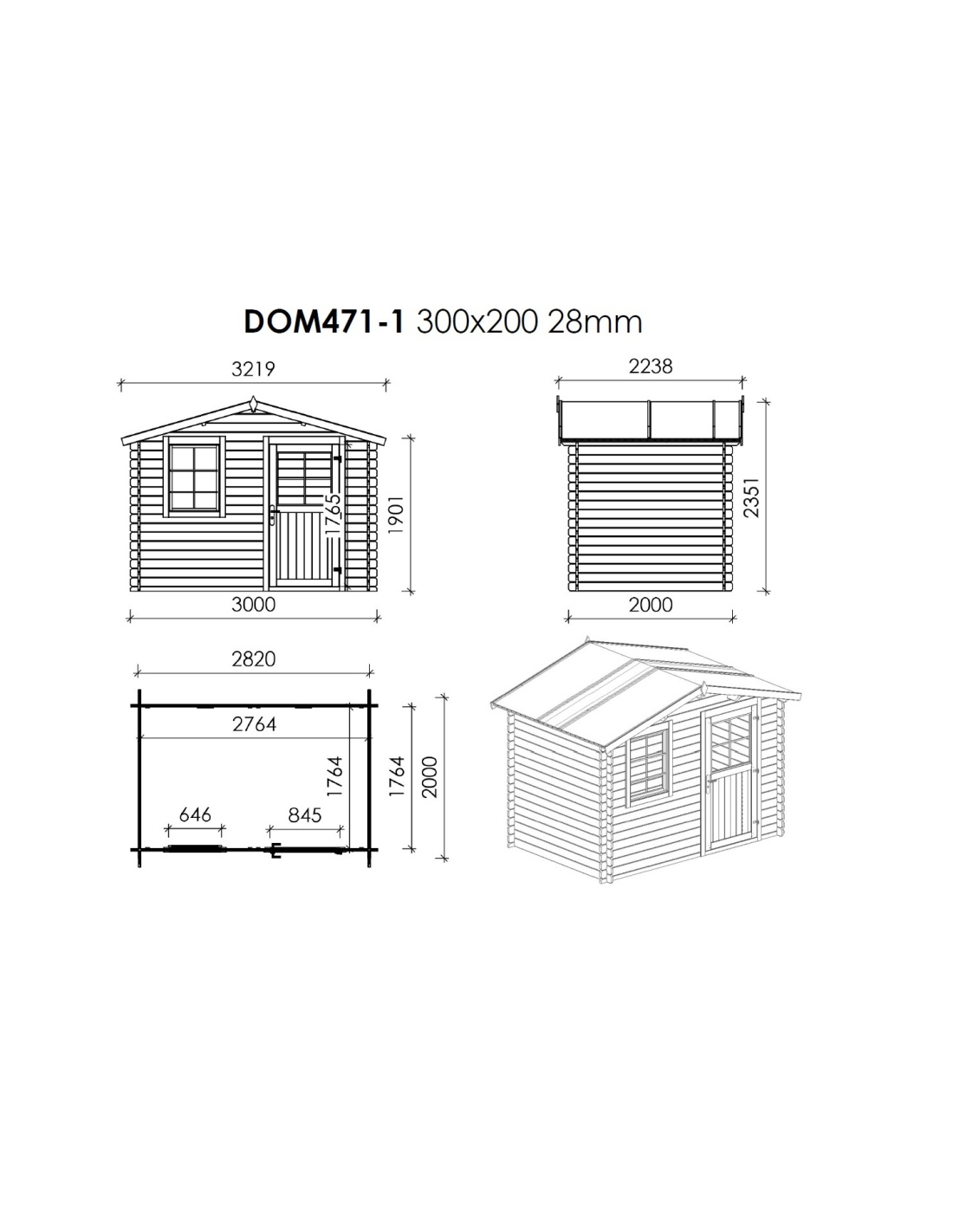 Die Fotos zeigen das Holzhaus DOM472+DOM394+DOM395+POD04 mit der Fläche von 15 m2, Frontbreite von 3M und Tiefe von 2M.