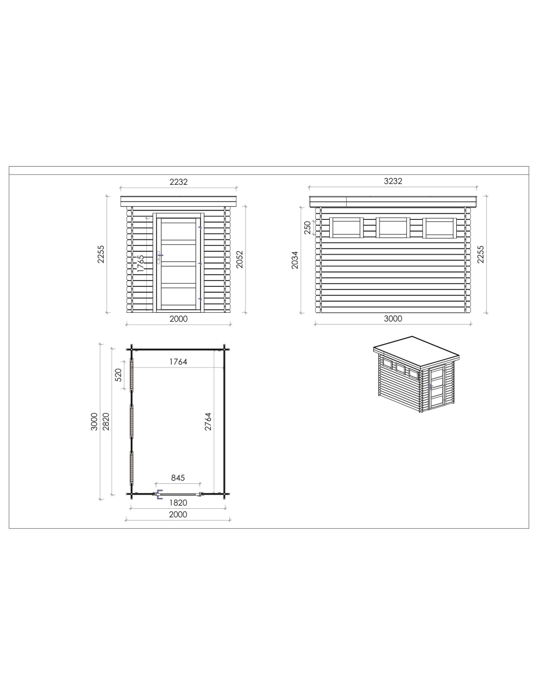 Gartenhaus aus Holz DOM627 von ALTANKA p.s.a. Es ist aus hochwertigem Holz gefertigt. Es ist 2M breit und 3M tief.