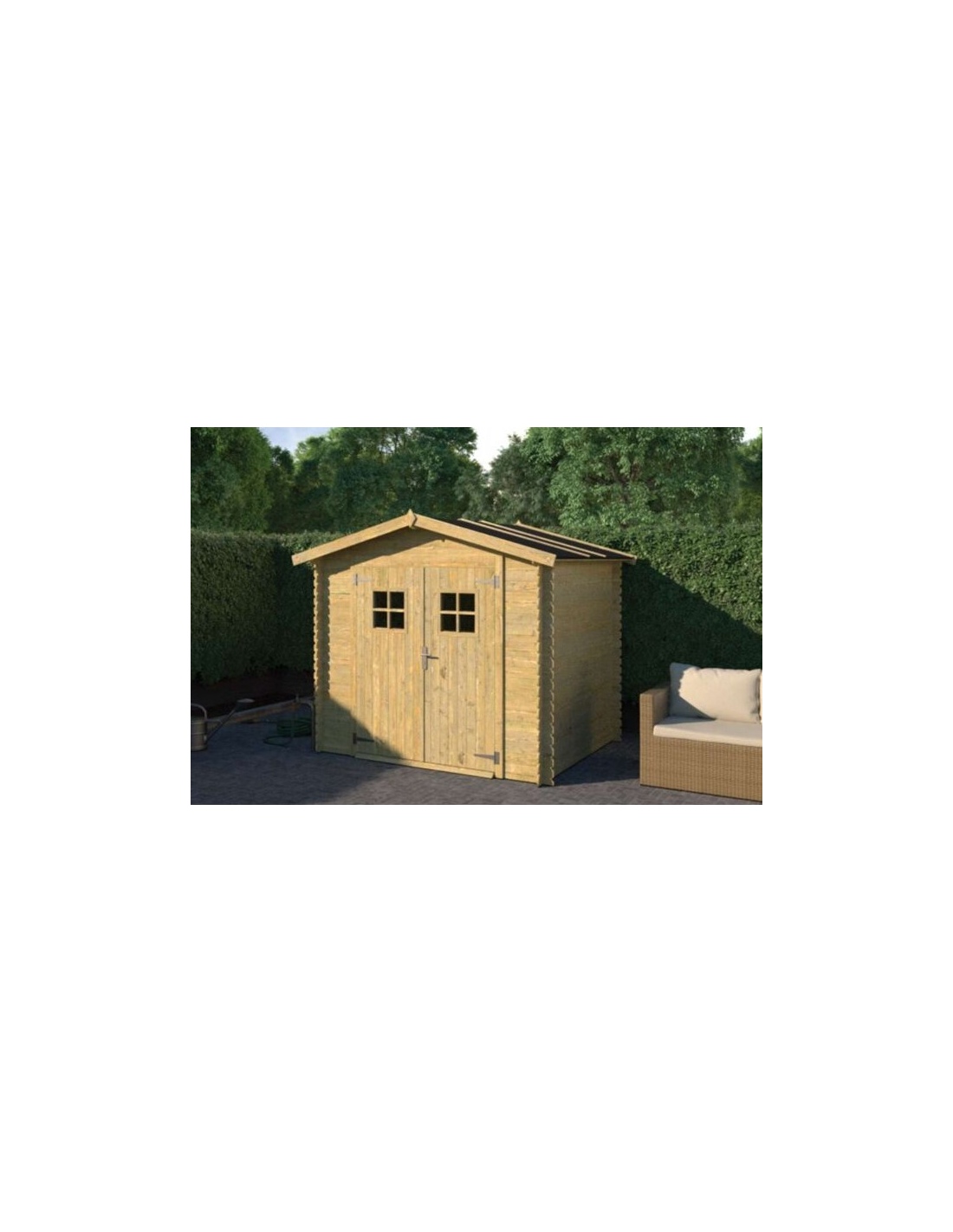 Gartenhaus aus Holz DOM20 von ALTANKA p.s.a. Es ist aus hochwertigem Holz gefertigt. Es ist 2.46M breit und 2M tief.