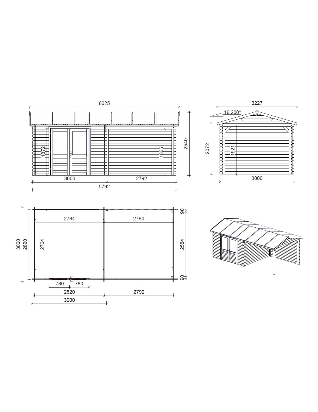 - Dachdicke (mm): 16