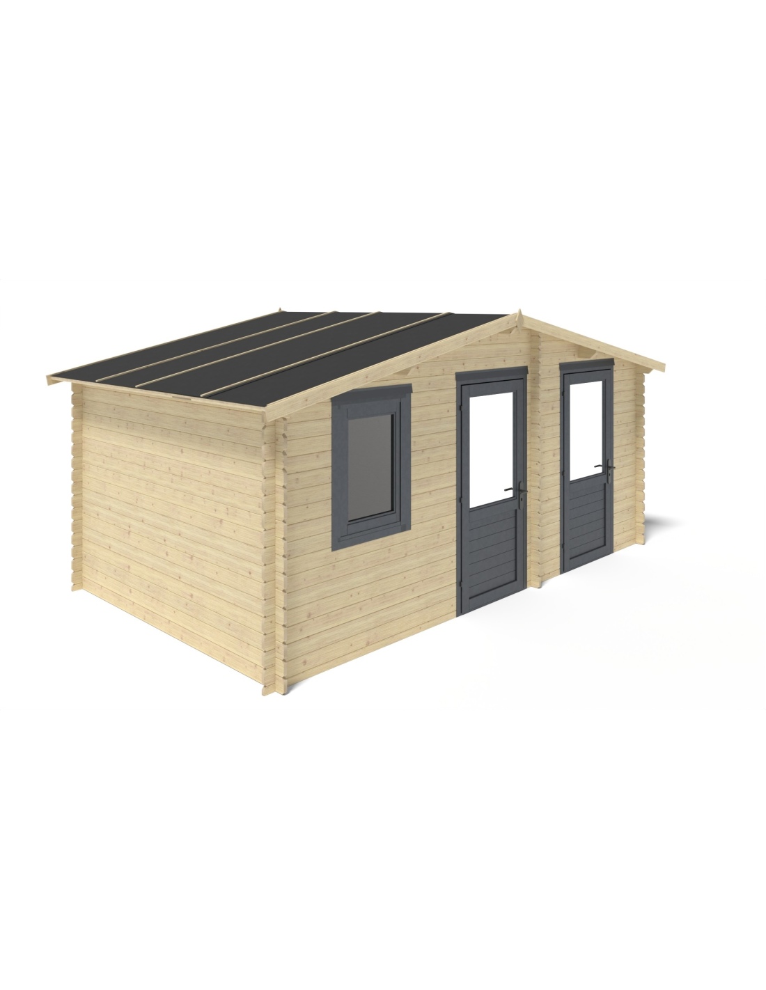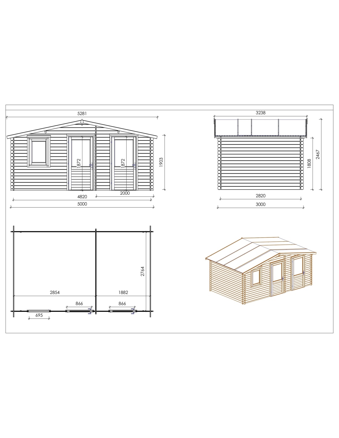 Holzwerkzeughaus DOM638 mit einer Fläche von 15 m2, einer Frontbreite von 5 m, Tiefe von 3 m. Die Montage des Häuschens mit der im Produkt enthaltenen Anleitung bereitet keine größeren Schwierigkeiten.