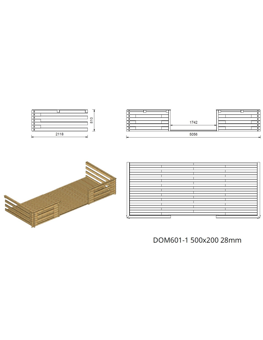 Die Fotos zeigen das Holzhaus DOM638+DOM600+DOM601+POD04 mit der Fläche von 25 m2, Frontbreite von 5M und Tiefe von 3M.
